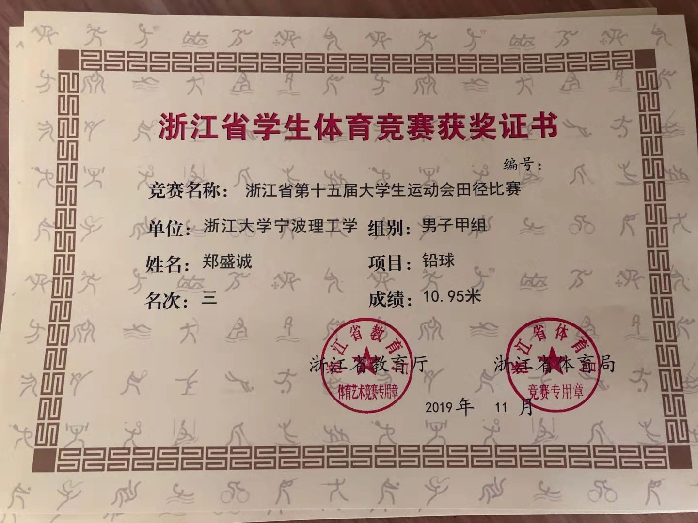 作为全省最高水平的田径赛事,本次大赛设甲、乙、丙、丁四组,全省共计106所高等院校,1.1万余名教练员和运动员参加了本次比赛。赛场上,理工运动员奋勇争先,积极备战,以顽强的拼搏精神认真对待每一场比赛。最终,史珂名同学获得甲组女子跳高银牌,郑盛诚同学获得甲组男子铅球铜牌。同时,在跳远、100米、跳高等项目中理工健儿也纷纷进入前八名,成绩斐然。魏立超老师获得大运会优秀教练员称号,郑盛诚、万嘉祺两位同学获得优秀运动员称号。