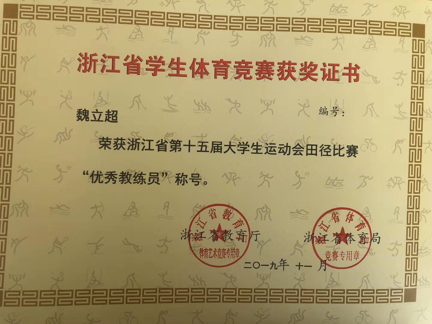2019年11月10日,由浙江省教育厅、浙江省体育局主办的浙江省第十五届大学生运动会田径比赛落下帷幕。学校代表队由朱天明老师担任领队,胡晓帆、吴伟波、魏立超三位老师担任教练,精选10名运动员出征本次大运会。