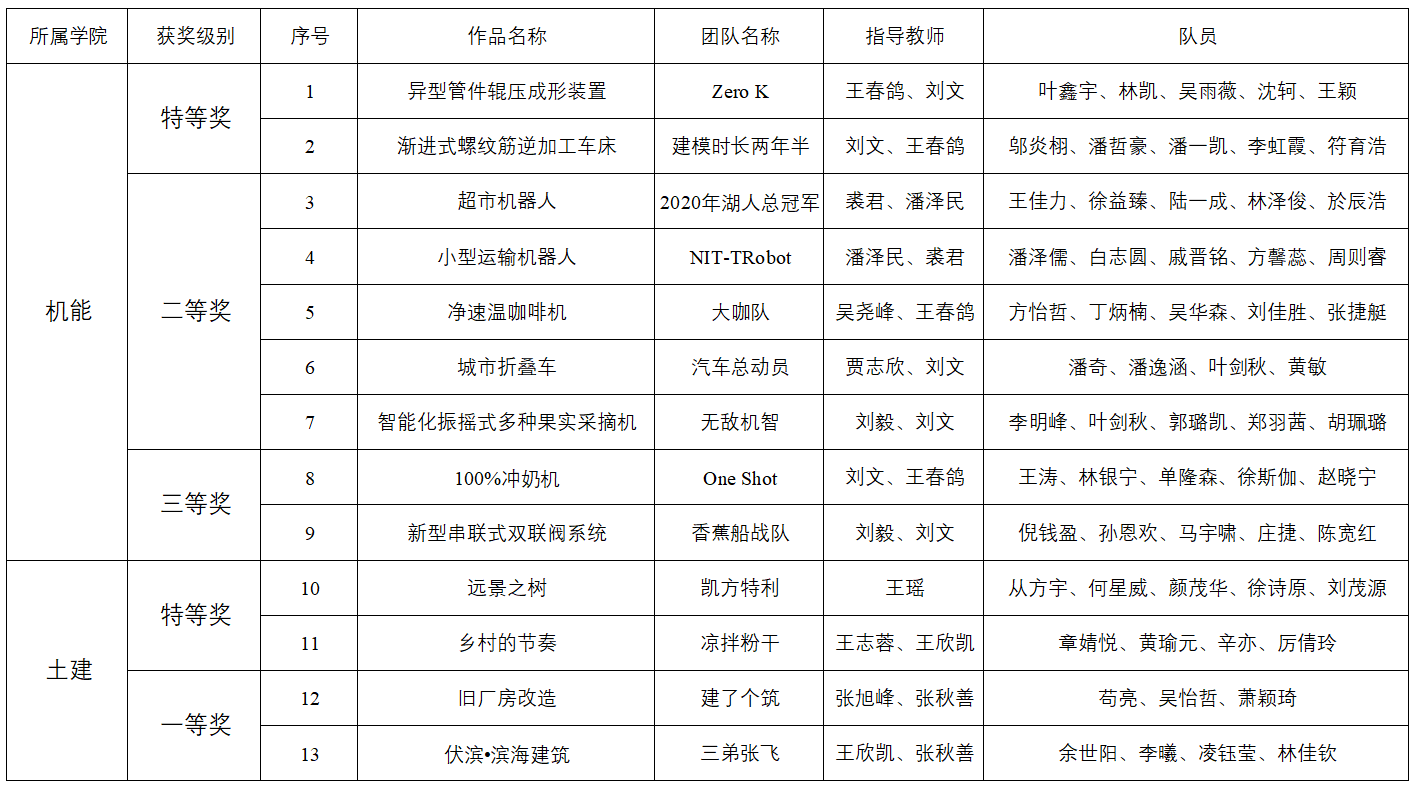 10月31日,2019第12届全国三维数字化创新设计大赛省赛获奖名单已公布。学校机能学院和土建学院共15支队伍参赛,本次获省奖13项,其中特等奖4项,一等奖2项,二等奖5项,三等奖2项。其中,单隆森、李明峰两位同学在此次全国3D大赛游学夏令营活动中表现优异,成果突出,荣获优秀营员称号。获得特等奖队伍和优秀营员同学将直接晋级全国总决赛。