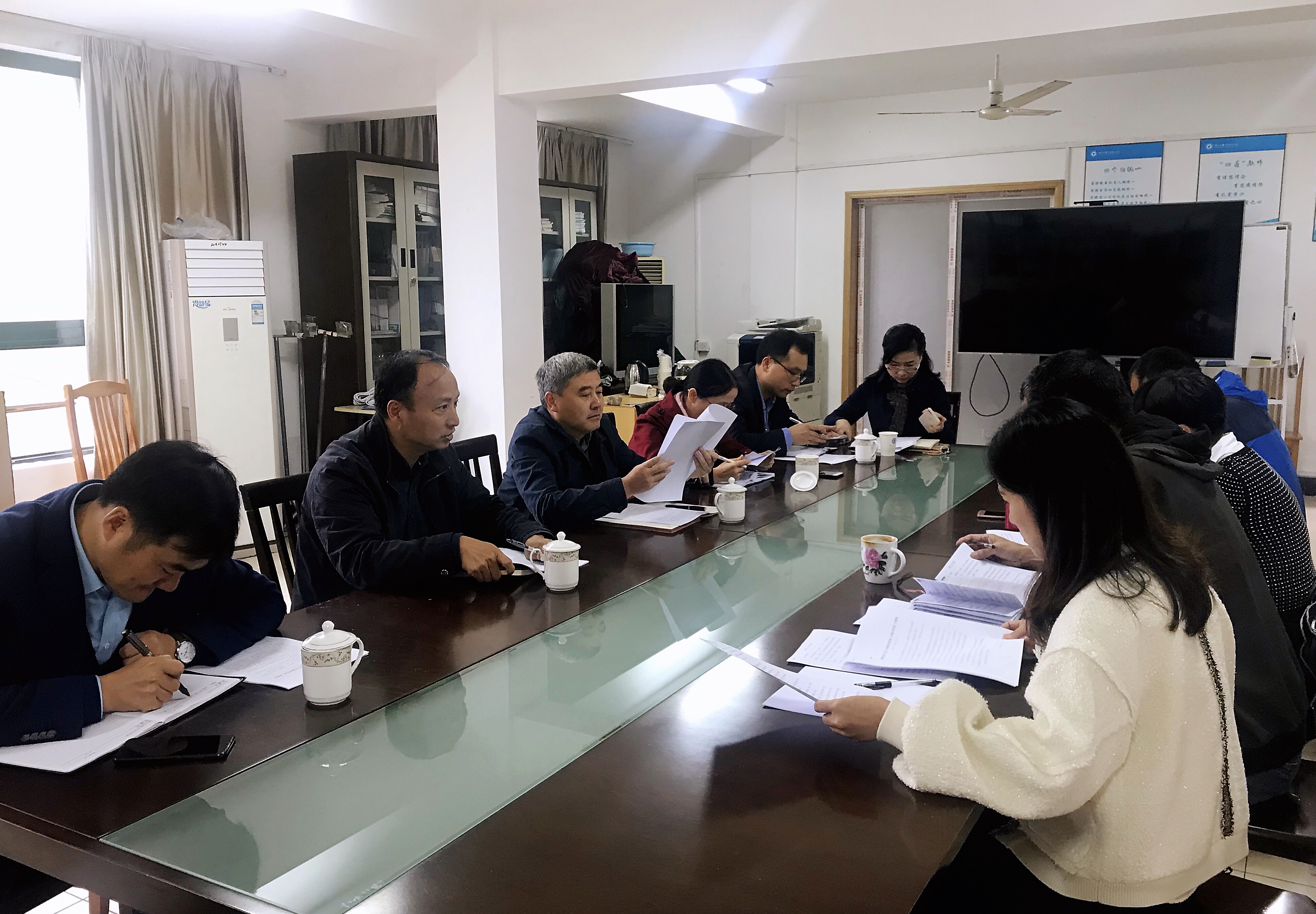 法政学院副院长、体育部主任朱天明从师资队伍、课程教学、体质测试等方面汇报了体育部的工作现状,分析了体育部在学生体能测试、教学安排、体育教师考核等方面存在的问题,并提出了下一步工作计划和举措。