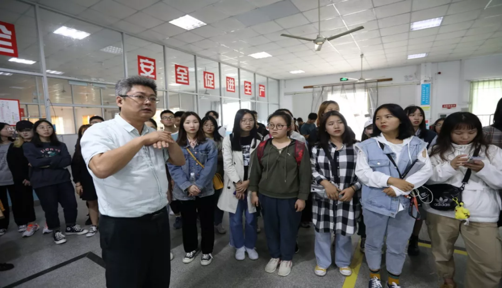 企业负责人向同学们详细介绍了公司企业文化、生产运营管理情况以及发展前景,同时带领同学们到展厅、生产车间进行实地参观学习,向同学们介绍了车间设备的功能与使用等情况。