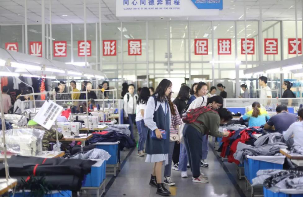 在集团工作人员的带领下,同学们参观了布匹生产车间和衣服生产车间,从打样、裁剪、缝纫、成衣,每一步都非常严谨认真,机械化助力生产效率和成品质量不断提高。