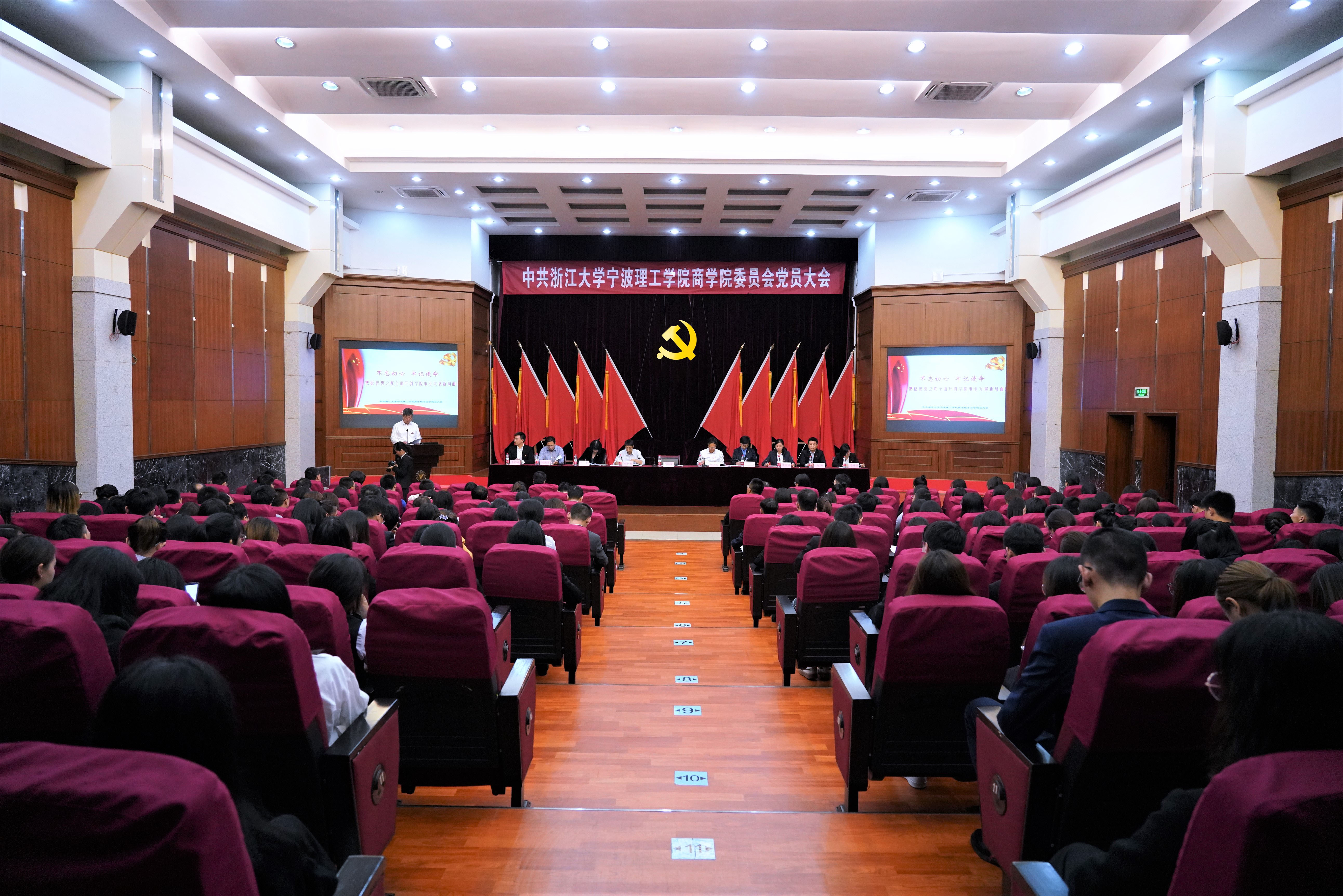 10月24日,中共浙江大学宁波理工学院商学院委员会党员大会在金宗城法学教学中心召开。大会审议通过了商学院党委工作报告,选举产生了新一届商学院党委委员会和纪委委员会。学校党委书记胡征宇,党委副书记、纪委书记顾禹标,党委组织部部长周树红出席大会。周丽娟主持会议。学院师生党员及受邀民主党派代表共200余人参加大会。