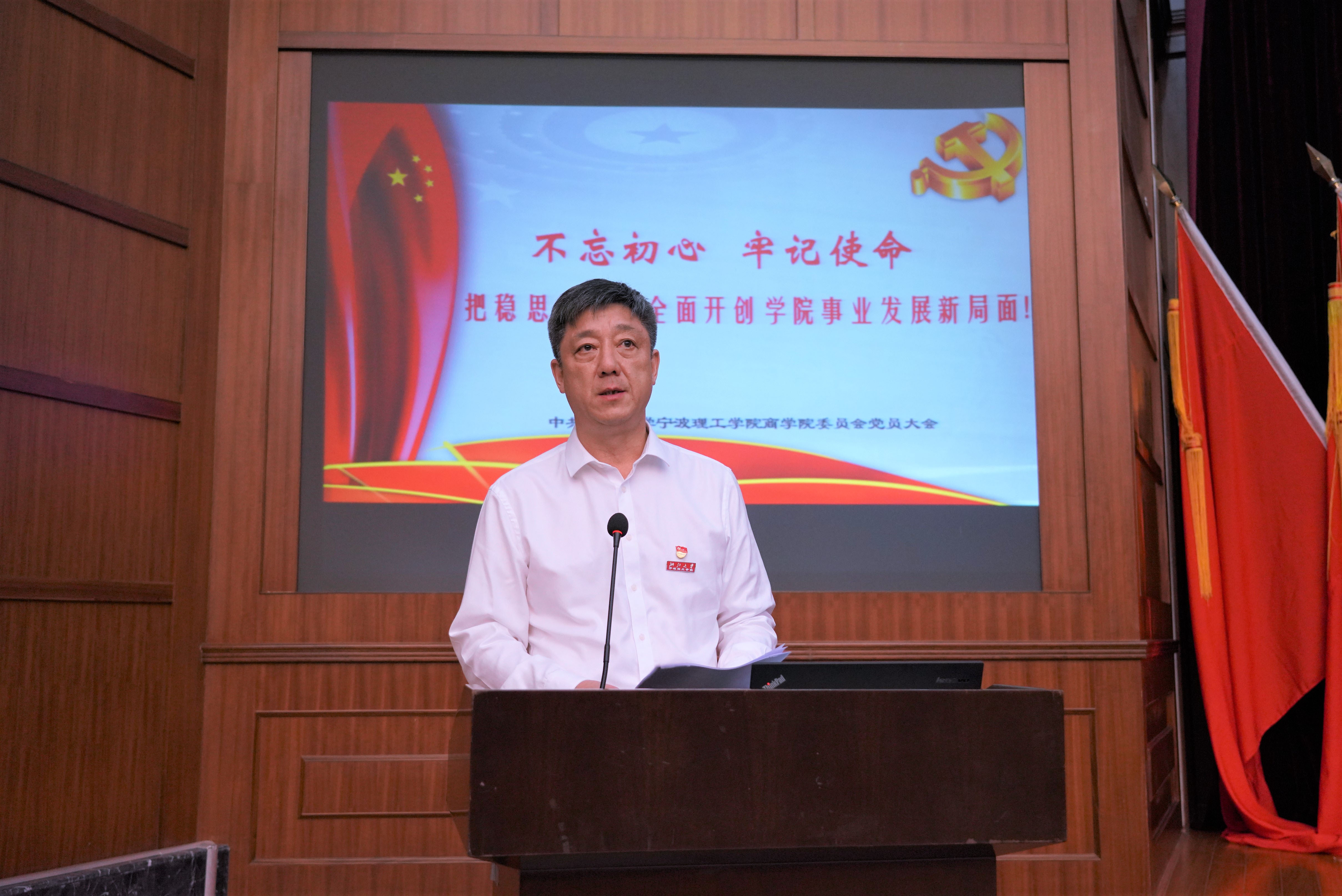 李萍萍受商学院党委委托向大会作题为《不忘初心 牢记使命 把稳思想之舵全面开创学院事业发展新局面》的工作报告。报告回顾了商学院党委成立以来的工作,分析了当前商学院发展面临的新形势新挑战,提出了新阶段学院发展的基本思路和主要举措。报告指出,要坚持思想引领、制度先行,以商学院设系为契机,不忘初心、牢记使命,紧紧围绕人才培养这一中心工作改革创新、团结奋进,为建设与国际接轨的区域一流商学院努力奋斗!