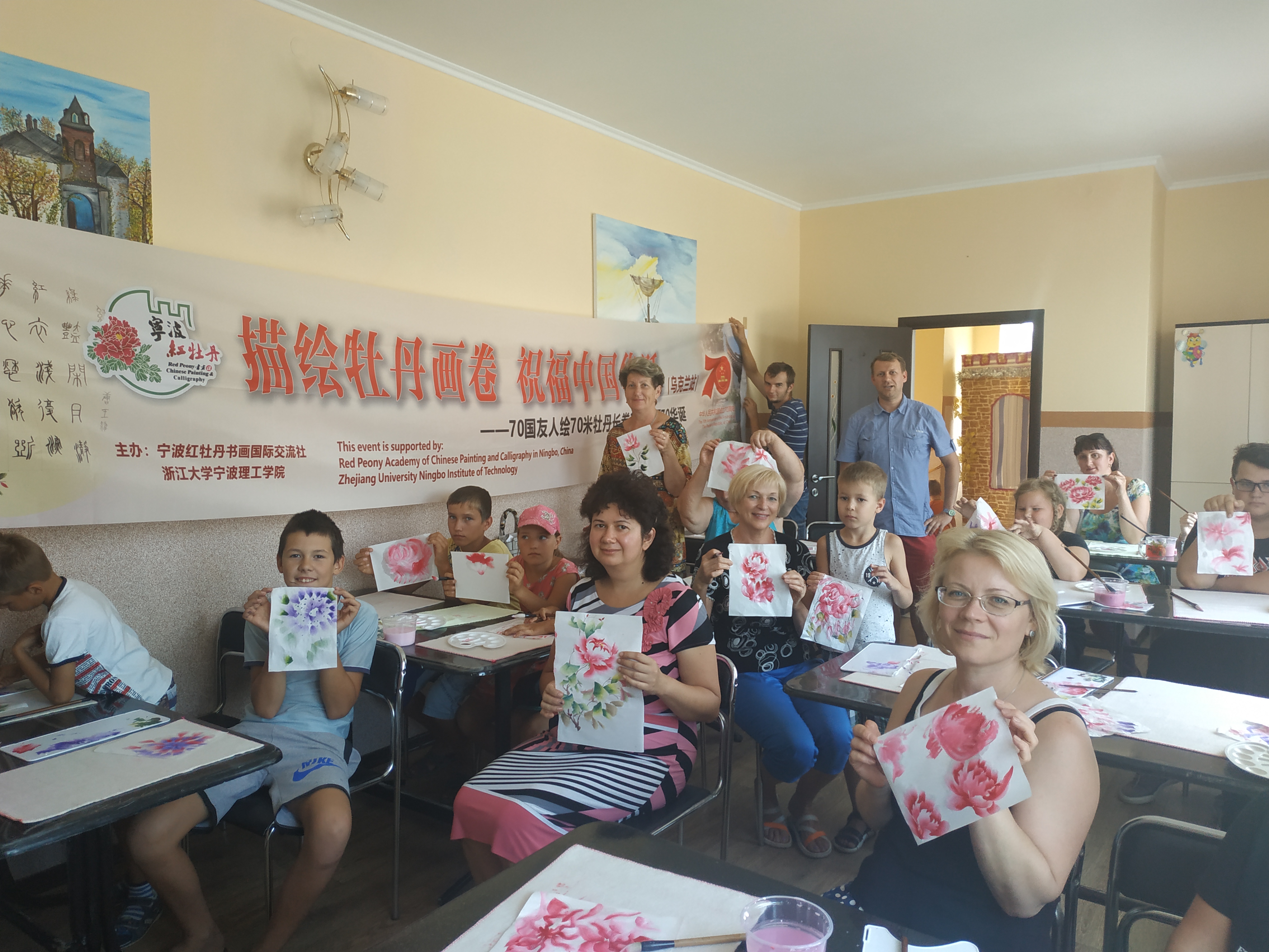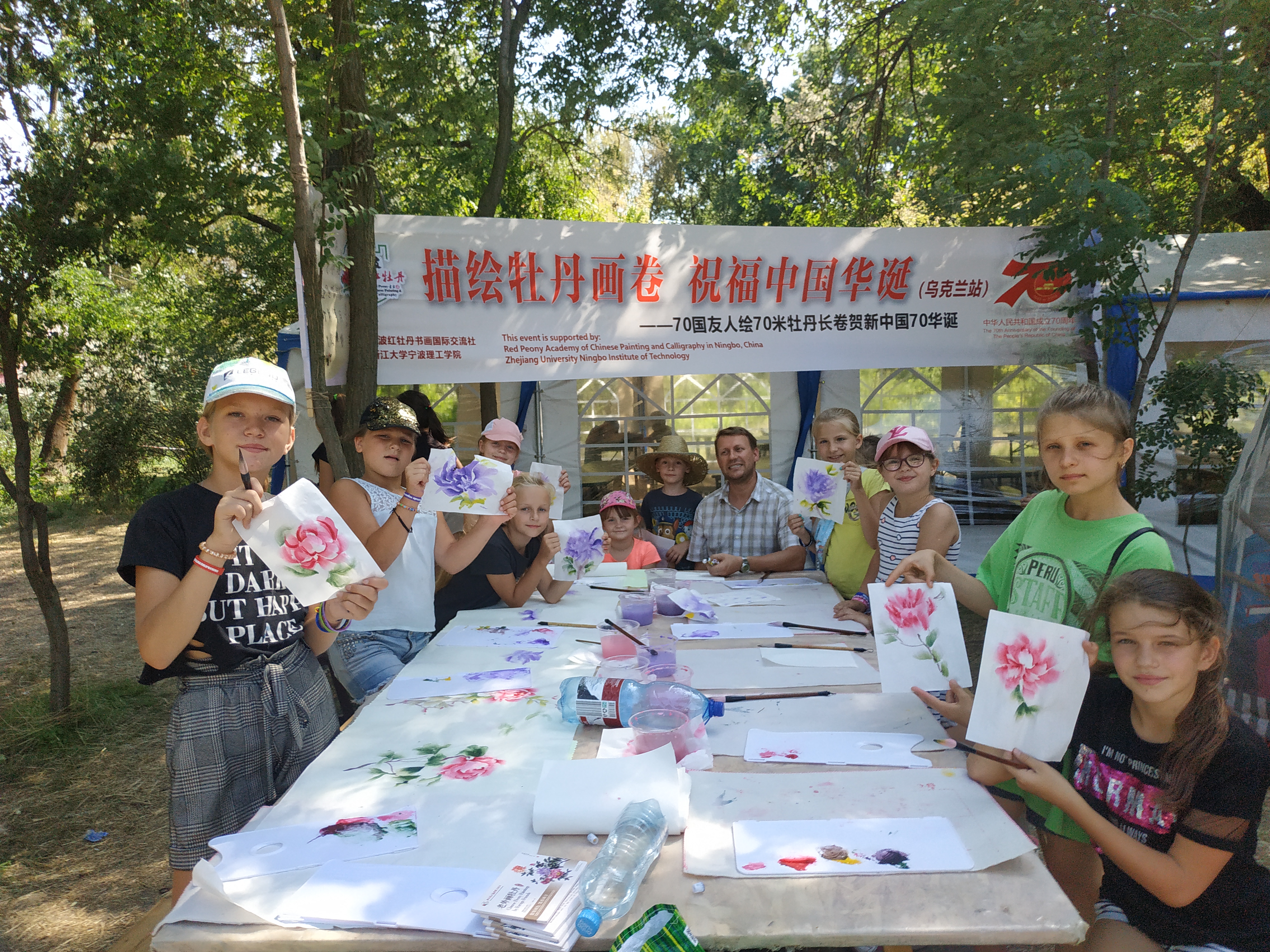 7个方阵中,70国国际友人方阵尤为引人瞩目。该方阵由来自英国、法国、德国、意大利、俄罗斯、乌克兰、美国、特立尼达和多巴哥、玻利维亚、澳大利亚、印度、巴基斯坦、柬埔寨、南非、马达加斯加等五大洲70国外籍人士组成,囊括外籍中小学生、留学生、教师、专家、国际企业家等。千姿百态的牡丹在不同国家学员的手下各生娇媚,笔韵墨香诉说着道不尽的中国情。