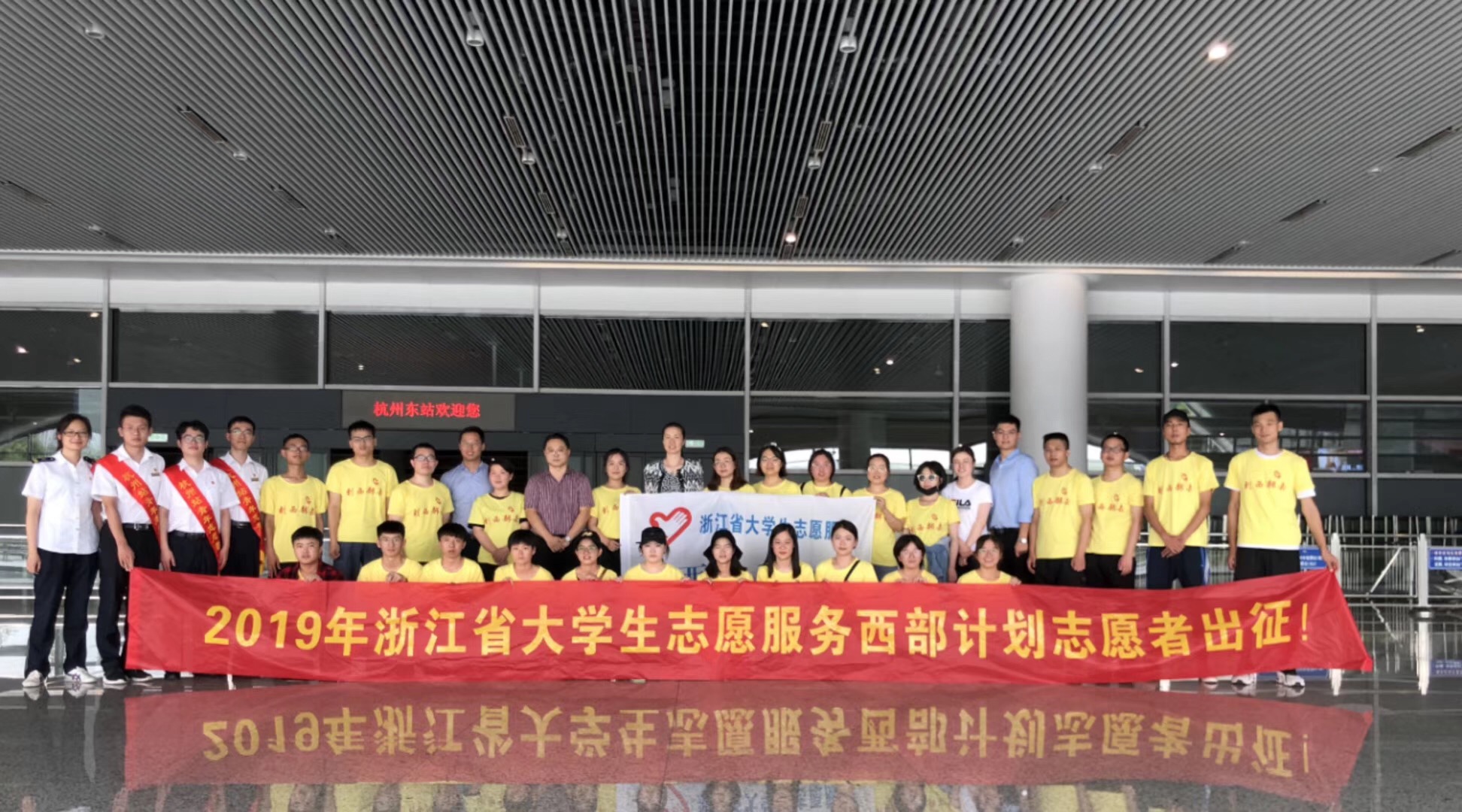 学院党委副书记、副院长冯建波,信息学院、数据学院和团委相关负责人前往杭州为学校两位参加浙江省大学生西部计划的志愿者送行,两名志愿者将到祖国最需要的地方,去奉献青春。
