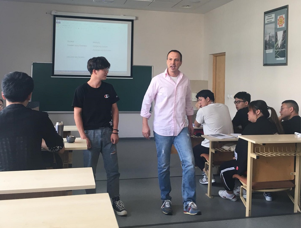 7月10日,外语学院与生化学院的同学们在学校两位老师的带领下,根据波兰校方的安排开始了第一天的行程。课堂上,波兰老师生动幽默,用通俗易懂的的例子来帮助学生更好地学习波兰语。在波兰语里面对于舌头卷翘度的要求较高,老师言传身教,通过深情并茂的演绎让学生能够更快的理解。而学生们则聚精会神,紧跟老师的步伐。