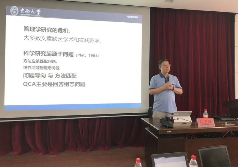 6月28日-29日,东南大学教授、博导、国际比较方法专家、网络COMPASSS咨询委员、国内定性比较分析(QCA)方法倡导者杜运周教授,应邀做客学校“名师有约”,为学校教师开展题为“社会科学研究新道路——QCA原理及应用”的学术培训。本次培训由学校教师发展中心和商学院联合举办。