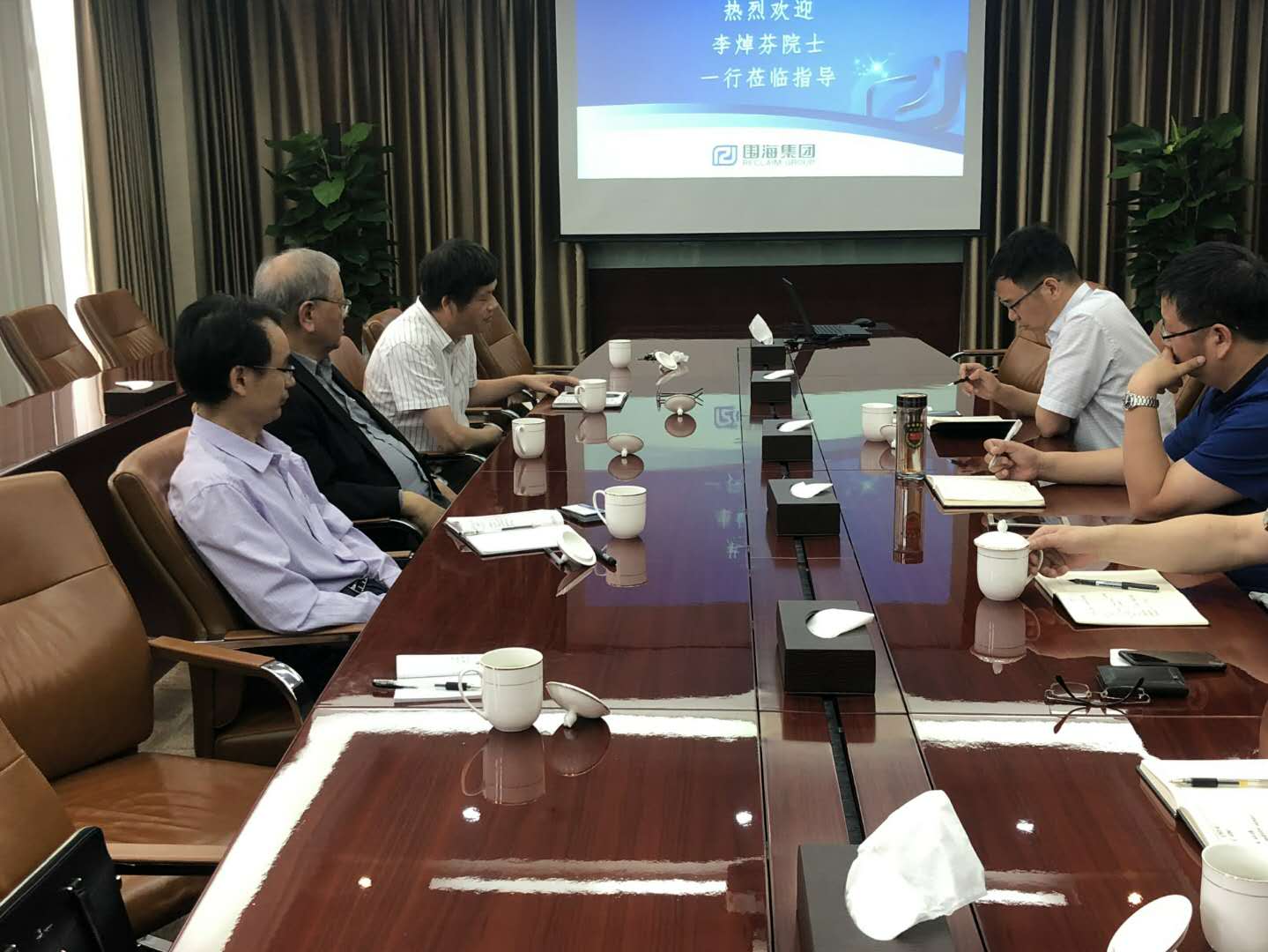 6月12日上午,李焯芬院士一行访问了浙江省围海控股集团有限公司,与围海股份总工程师吴良勇和围海技术董事长、总经理俞元洪等进行座谈交流。李院士听取围海集团发展历史、工程成就与科研成果汇报后,简单介绍了香港地区及国外在围海建设方面上的发展动态,提出今后中心将紧紧围绕宁波大湾区建设,充分发挥围海集团及中心其他参建单位的技术实力,为大湾区环境建设与保护提供技术支撑。