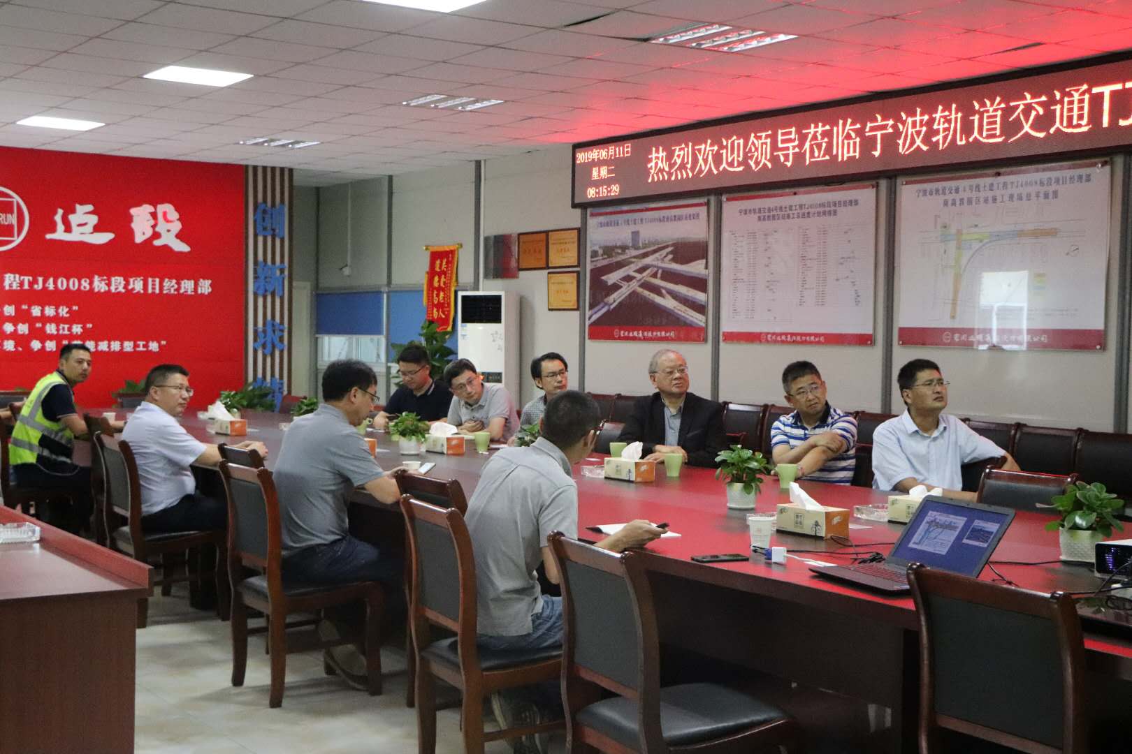 6月11日上午,李焯芬院士在土建学院院长凌道盛、党委书记王银辉、副院长王文军及朱大勇教授的陪同下,来到宏润建设集团承建的宁波轨道交通TJ4008标项目部考察。李院士一行与宏润建设集团股份有限公司副总经理李涵军及项目部负责人进行了座谈交流,听取了工程进展介绍,并赴项目施工现场进行实地考察。李涵军副总经理表示,作为宁波市龙头建设企业,宏润建设集团将充分发挥李院士及中心平台的影响力,为宁波市工程建设作出更大贡献。未来也将与浙大宁波理工学院继续保持长期密切的产学研合作关系,实现合作共䊨。