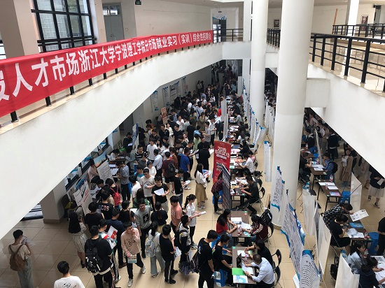 本次参加招聘会的110余家单位中有包括浙天集团、融创房产、金田铜业集团、宁波交通工程建设集团等中国500强企业和宁波地区行业龙头企业以及19家浙江大学校友企业,为学生提供了3000余个的就业实习(实训)岗位。招聘会吸引了2019届毕业生以及部分大三学生,现场人头攒动,各单位展位前都排满了等待面试的学生。据统计,本次招聘会共有2000余名学生到场,初步达成意向820余人。