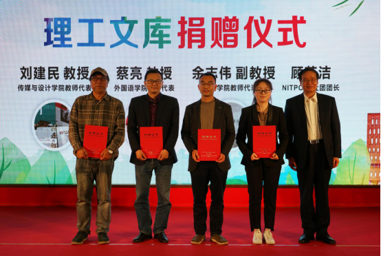 启动仪式上,传媒与设计学院刘建民老师、外国语学院蔡亮老师、商学院余志伟老师,以及NIT POST社团团长顾芸洁作为师生代表向“理工文库”捐赠图书和报纸,图书与信息技术中心主任赵继海向捐赠代表颁发捐赠证书。“理工文库”自2007年设立以来,已入藏教师学术专著近200种,是学校全面收集、永久保存学校师生员工和校友学术成果的特藏库。