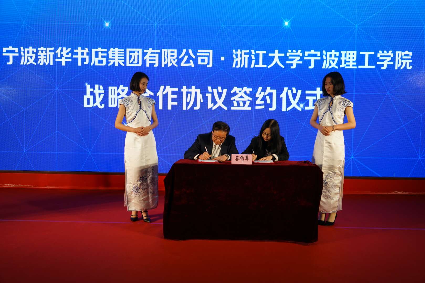 为合力打造有内涵有底蕴有特色的读书品牌,建立更紧密的校企业合作关系,学校图书馆馆长赵继海和宁波新华书店集团总经理余慧代表双方签署《战略合作协议》。下一步,双方计划在“阳明书房”特色文库、数字化阅读、社会阅读服务等方面加深合作,为全民阅读作出积极努力。