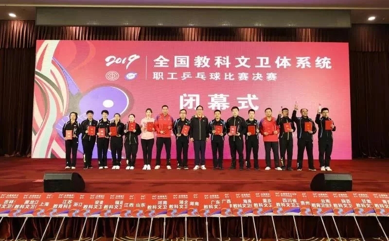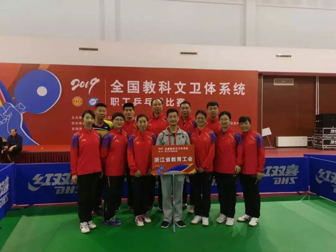 3月31日至4月4日,“当好主人翁,建功新时代”全国教科文卫体系统职工乒乓球比赛在全国总工会国际交流中心举行。经过全国各省(区、市)教科文卫体工会初赛选拔,共有38支代表队392名队员入围本次决赛。我校教工孙倩与浙江大学公共体育与艺术部恽冰、校医院周小英、建筑设计院黄争舸、芦瑛等代表浙江省教育工会代表队荣获团体第四名。全国总工会副主席蔡振华与我校教工孙倩等运动员亲切合影。