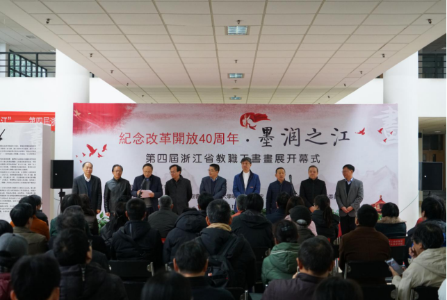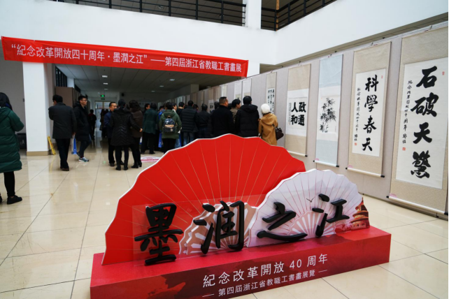 12月12日下午,由浙江省教育工会主办,浙江省教育书法协会、浙江大学宁波理工学院、浙江书法家协会教育委员会承办的“庆祝改革开放四十周年.墨润之江”——第四届浙江省教职工书画展在我校NC大厅隆重开展。本次活动是为庆祝改革开放四十周年,讴歌祖国改革开放四十年来取得的辉煌成就,围绕省教育工会“立德树人,促进教育科学和谐发展”的工作主线和“民主管理、服务教工”的工作重点,组织和动员全省教职工积极投身文化校园、文化浙江建设而举办的。