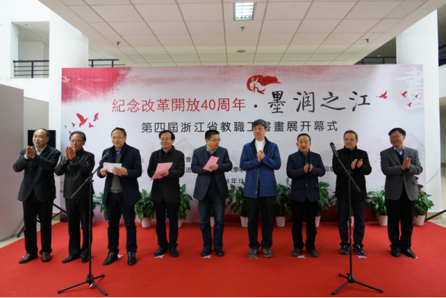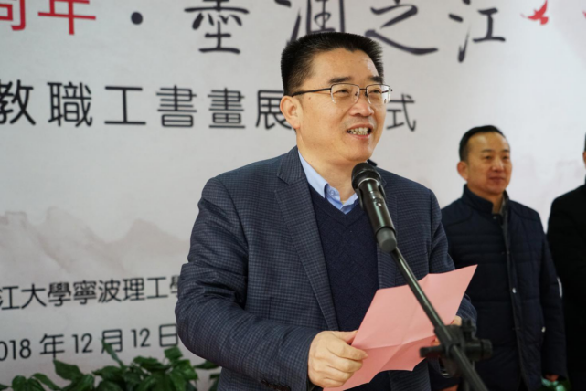 胡征宇代表学校欢迎各位领导、来宾莅临浙江大学宁波理工学院,感谢省教育工会的信任,在庆祝改革开放四十周年之际,将这场“墨润之江”主题书画展安排在我校进行。