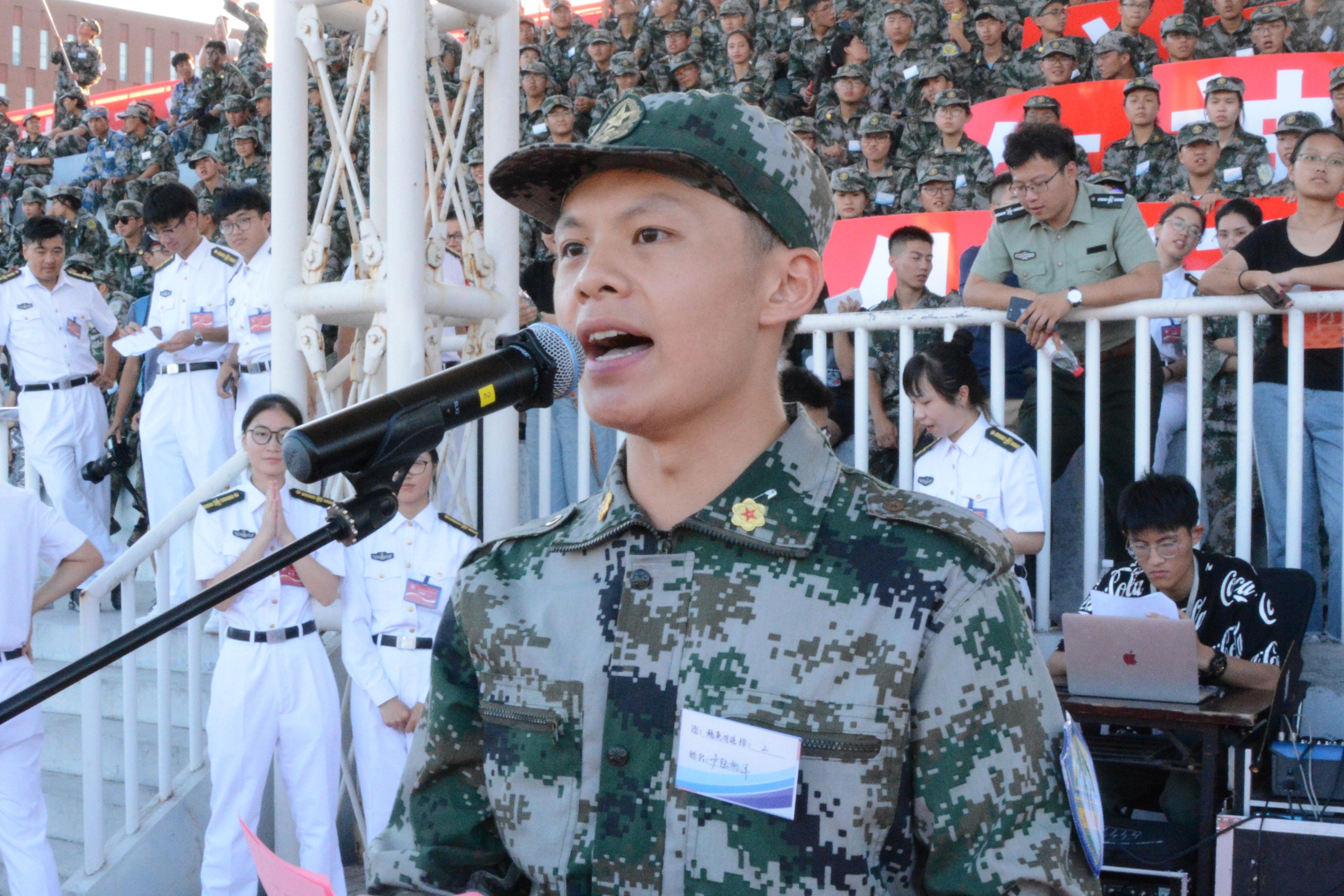 冯建波代表军训团作工作总结,向全体承训官兵和带训师生表示感谢。他细数各连队和参训学员在军训中的出色表现,对大家听从指挥、艰苦训练,齐心协力共同完成军训工作给予充分肯定。他强调,今天的总结大会不是终点,而恰好是大学生活的真正起点,希望同学们立志肩负起民族复兴的时代重任,立志听党话、跟党走,立志扎根人民、奉献国家,努力成为有大爱大德大情怀的人。邬小撑代表浙江大学军训师宣读嘉奖令,通报表彰获得四好连队、政治工作优胜、内务卫生优胜、作风纪律优胜、队列优胜等集体,以及军训考评一等奖、二等奖等236名学员。四连卢陆柏洋同学代表全体参训学员发言,感谢教官、老师和学长学姐们十三天来的悉心教导和无私帮助,感谢连队战友、同学们的携手前行,共同努力;并表态要将军训期间的优良传统和作风传承发扬到今后的学习生活中去。