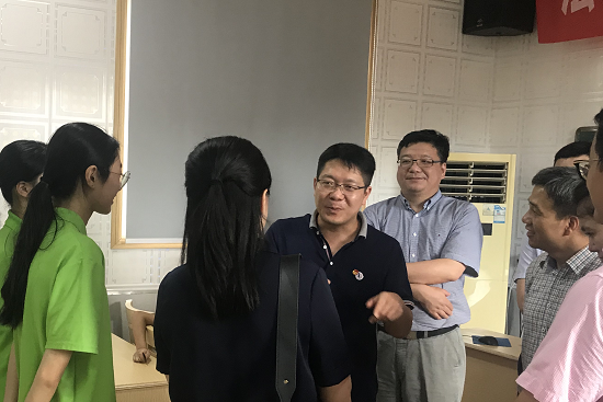 钱雪华书记一行先后参观了实践团队的授课教室和队员宿舍,详细询问实践团队大学生的生活和工作情况。当了解到数年前在此接受支教的学员如今已成长为大学生,并以志愿者身份重新参与暑期支教,钱雪华书记不禁为这样的青年和青春故事点赞。领导们和实践团队师生在蔚斗社区居委会会议室开展座谈,听取实践团队大学生对基层实际的认识和自身的成长收获。夏文来副书记介绍了我校暑期实践整体情况,学校以“一员双岗双建功”为统揽,聚焦热点打造7大主题,从安全、思想、目标、干部入手从严管理实践团队,保障实践顺利进行。