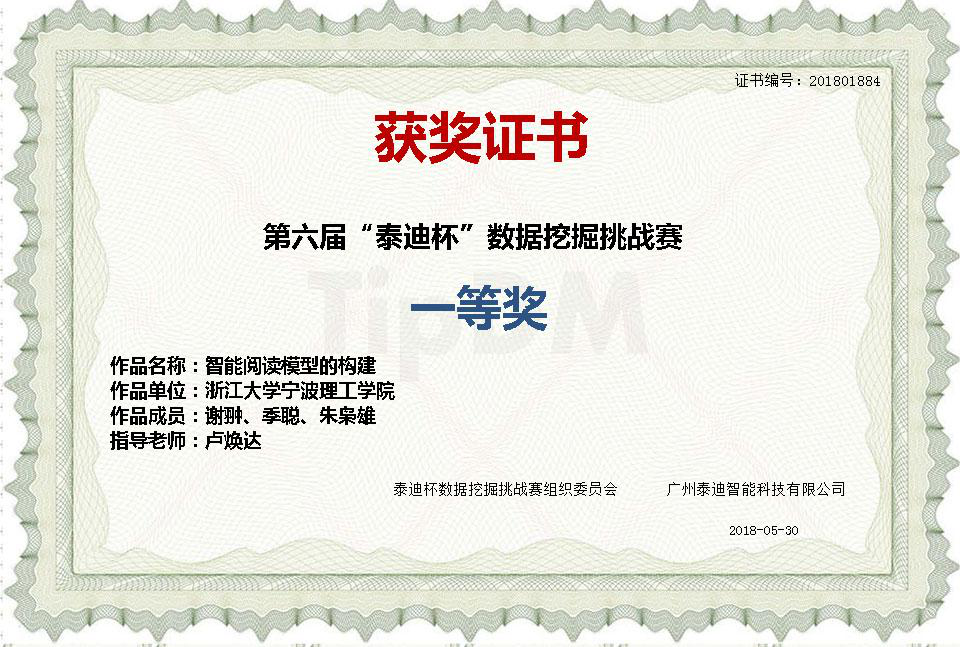 近日,第六届“泰迪杯”全国数据挖掘挑战赛结果揭晓。我校计算机与数据工程学院谢翀、季聪、朱枭雄在卢焕达老师的带领下,经过论文初审、视频答辩等竞赛环节,最终在全国300所高校的3000多组队伍中脱颖而出,获得一等奖。