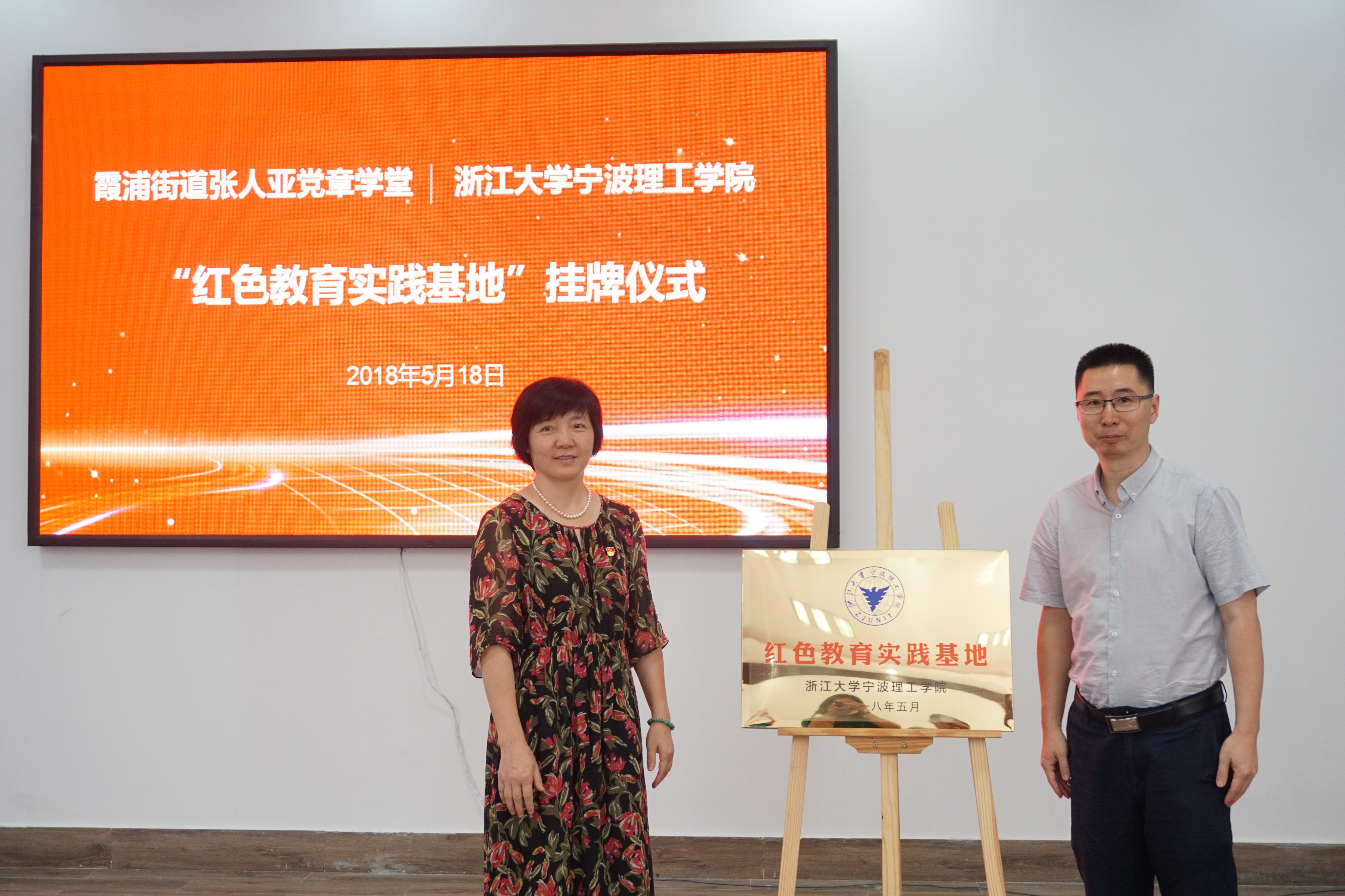 2018年5月18日,在首部党章守护者张人亚同志诞辰120周年之际,学校组织教师党员代表来到北仑霞浦张人亚故居,为浙江大学宁波理工学院红色教育实践基地揭牌,开展党支部“不忘初心、牢记使命”主题党日活动。揭牌仪式在张人亚学堂举行。学校党委书记费英勤,党委副书记、纪委书记陈小兰,组织人事部和纪检监督部两个党支部的全体党员,以及霞浦街道党工委副书记、办事处主任朱朝寅,党工委副书记许海芳等参与了此次揭牌仪式。