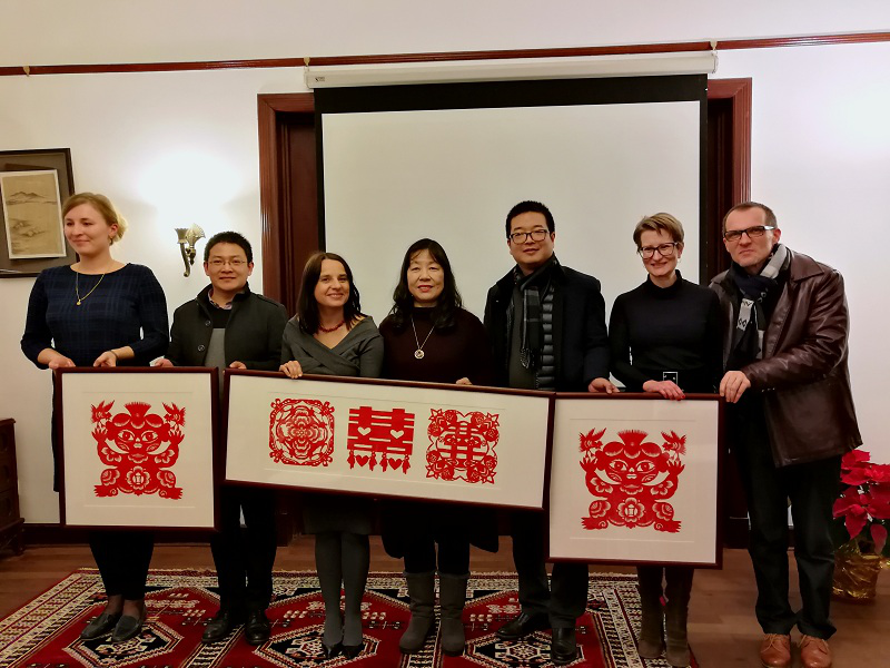 王小潞主任感谢波兰驻上海总领事馆对“波兰研究中心”师生的盛情邀请和接待,介绍了中心成立以来开展的工作、取得的成果和未来的计划,并将精心准备的师生剪纸作品赠送给领事馆,表达了对波兰重获独立100周年的庆贺以及对未来的美好祝愿。她鼓励在场同学积极利用“波兰研究中心”的人文交流平台,做中波文化交流的促进者。