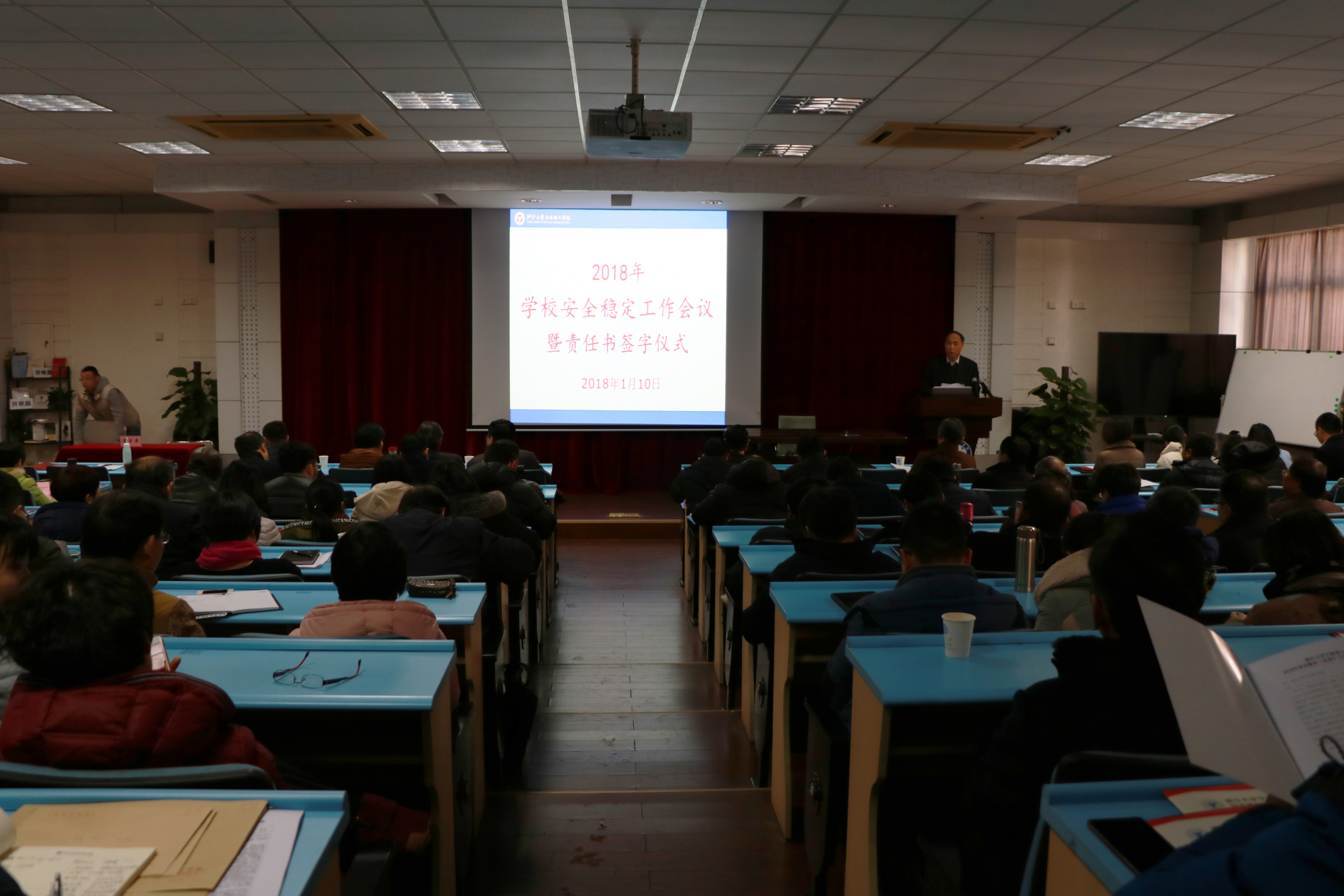 1月10日下午,学校召开2018年安全稳定工作会议,总结部署年度工作,签订2018年安全稳定工作目标管理责任书和意识形态工作责任书。金伟良院长讲话,综合治理委员会主任、费英勤书记主持会议。