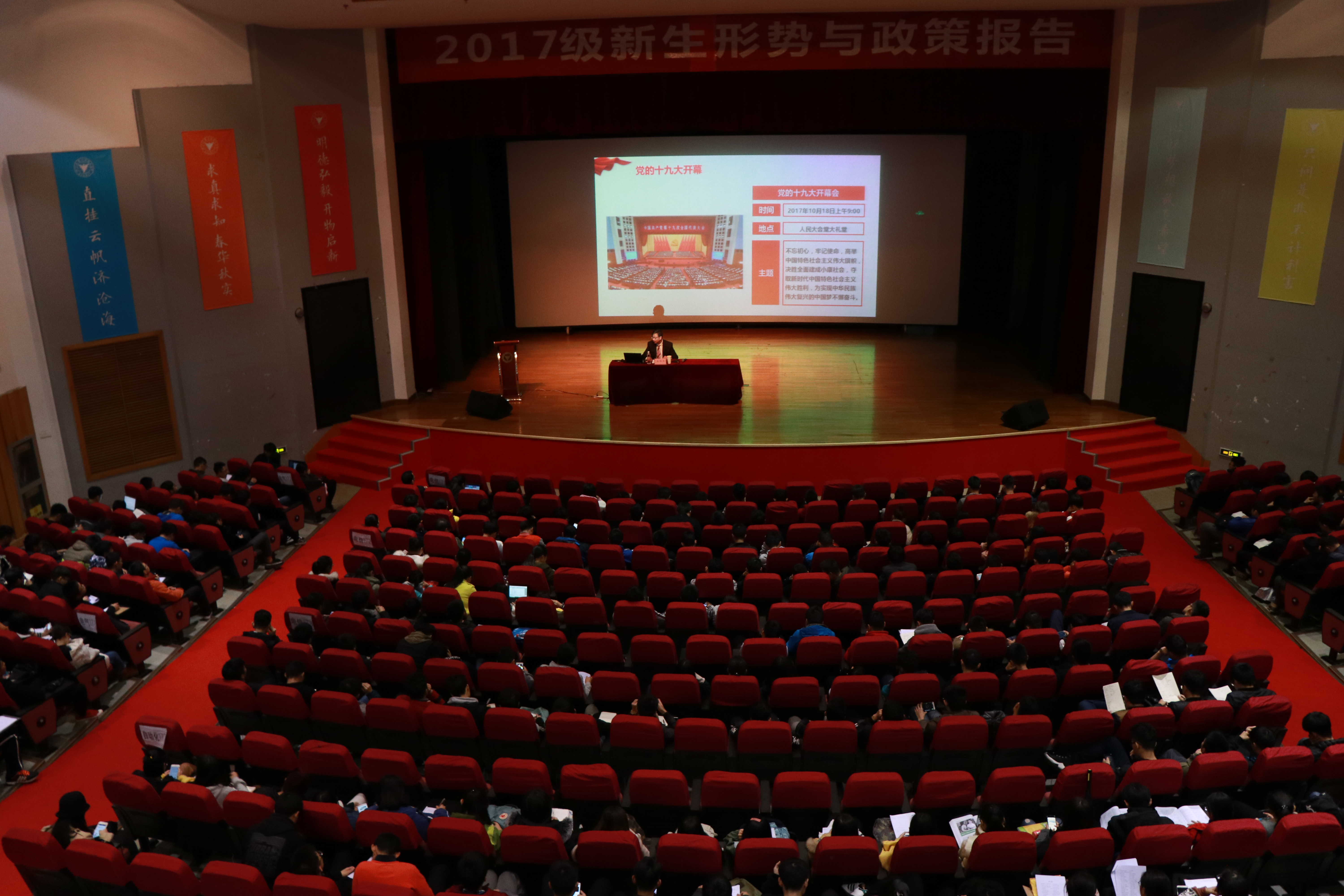 学习宣传贯彻党的十九大精神是当前和今后一个时期的首要政治任务。宣讲形势与政策作为学校坚持立德树人根本任务的渠道,承担着引领青年学子坚定理想信念的重要功能。11月30日晚,金伟良院长以“做有理想、有本领、有担当的新时代青年”为主题,为2017级新生作形势与政策报告,宣讲党的十九大精神。
