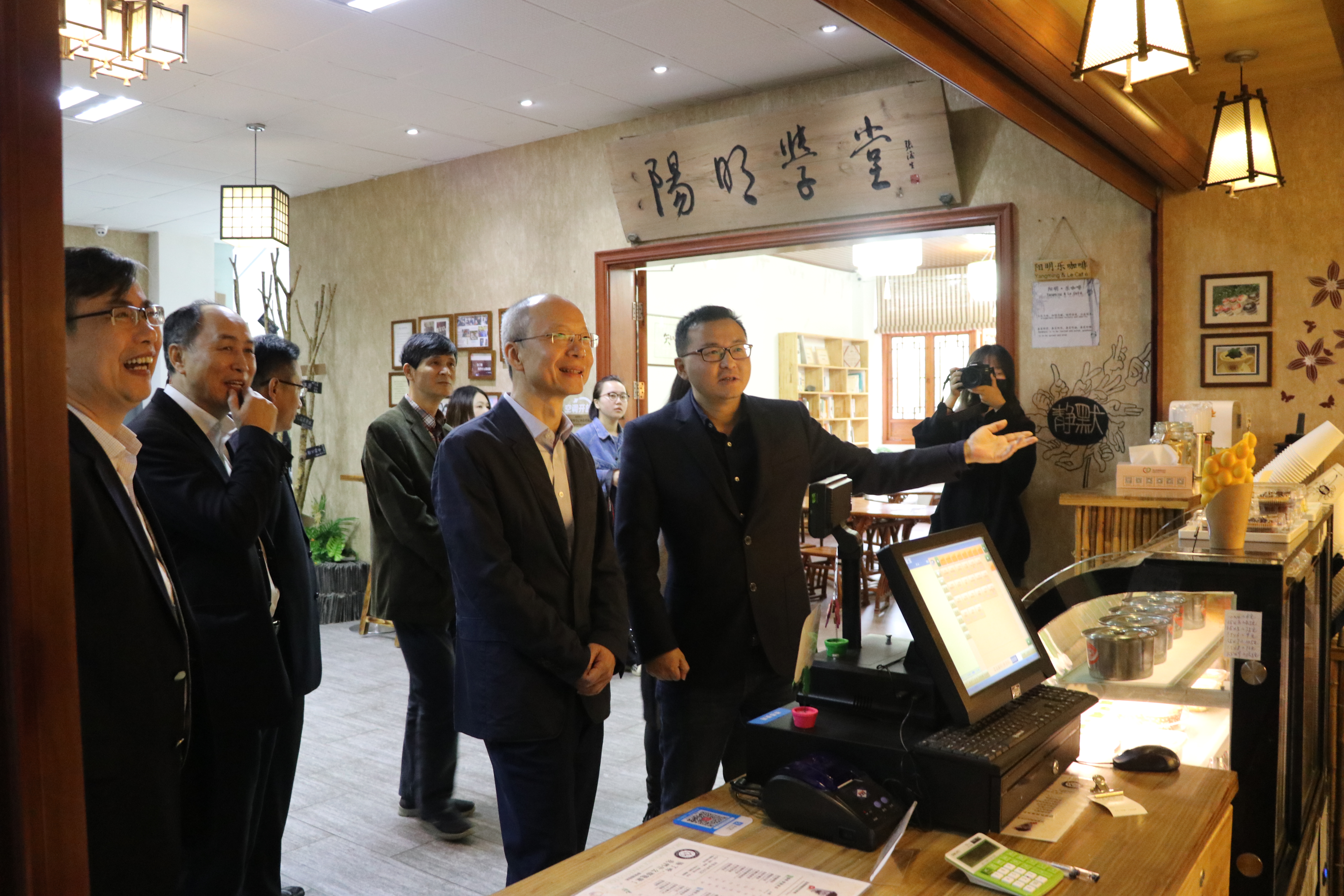 胡军一行还先后来到智能机器人创新实验中心和阳明学堂,参观智能机器人装配流水线,了解学院传统文化传播工作。他勉励学院以党的十九大精神为指引,大力践行科教兴国、人才强国战略,强化学院建设、学科发展和人才培育,努力实现更好、更快的发展。