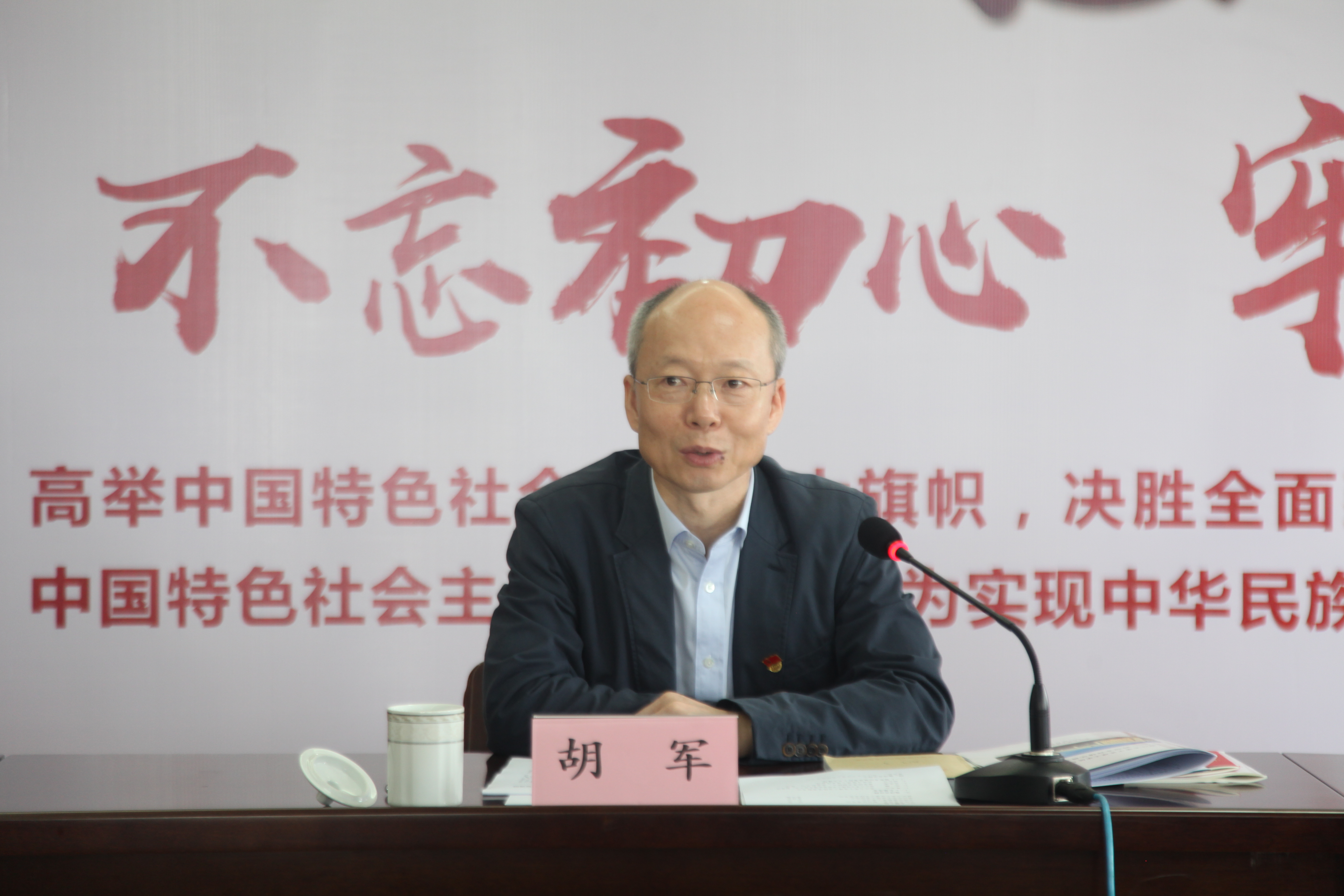 胡军书记在阐述了党的十九大的意义和精神后指出,学习贯彻党的十九大精神,高校是重要阵地,要将学习贯彻与教学育人重点工作紧密结合起来,进一步把思想政治工作抓实抓细抓出成效。胡军希望,班子成员要以上率下、老师要言传身教,带头学通弄懂,用十九大精神武装头脑、指导教学育人工作、推动学院更好发展;广大学子要胸怀理想、脚踏实地,坚定信念、牢记使命、严于律己,充分展现当代青年的良好精神风貌。