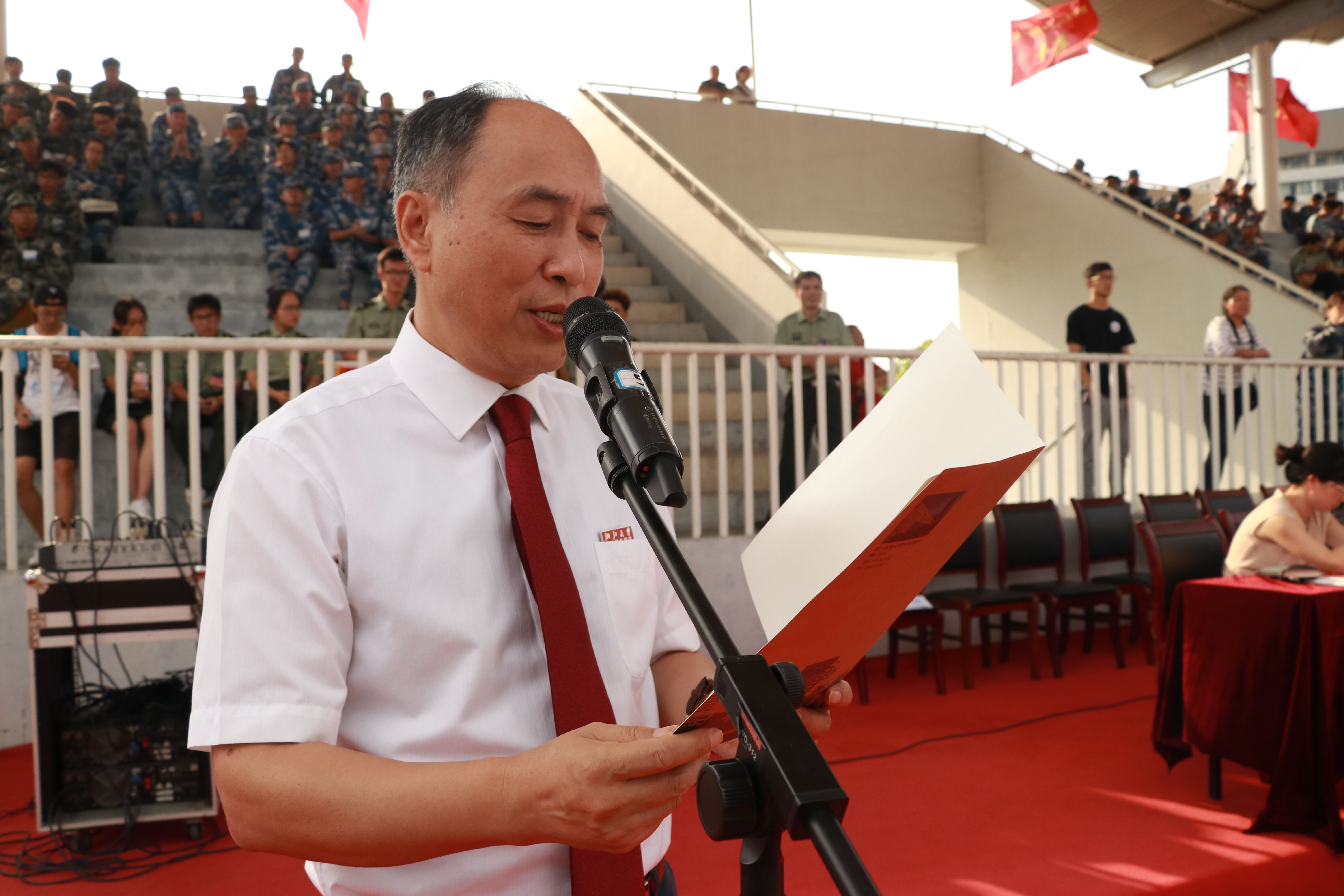 阅兵式上,学院党委书记费英勤在军训团政委黄光杰及军训团团长的陪同下检阅方阵。