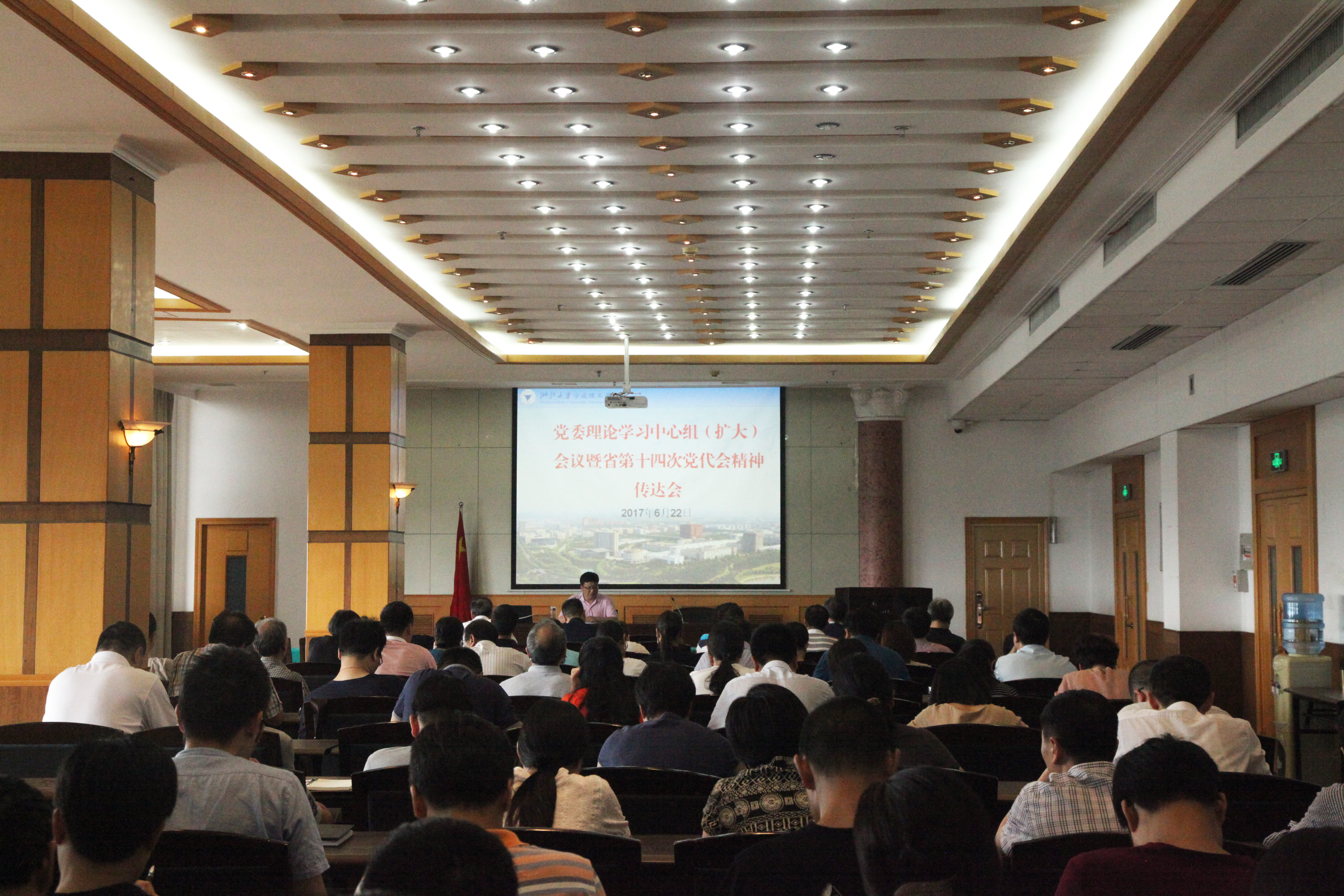 6月22日下午,学校在行政楼召开党委理论学习中心组(扩大)会议暨省第十四次党代会精神传达会。学校领导、全体中层干部和机关总支全体党员参加会议。学校党委副书记陈小兰主持会议,黄光杰副书记传达党代会精神。