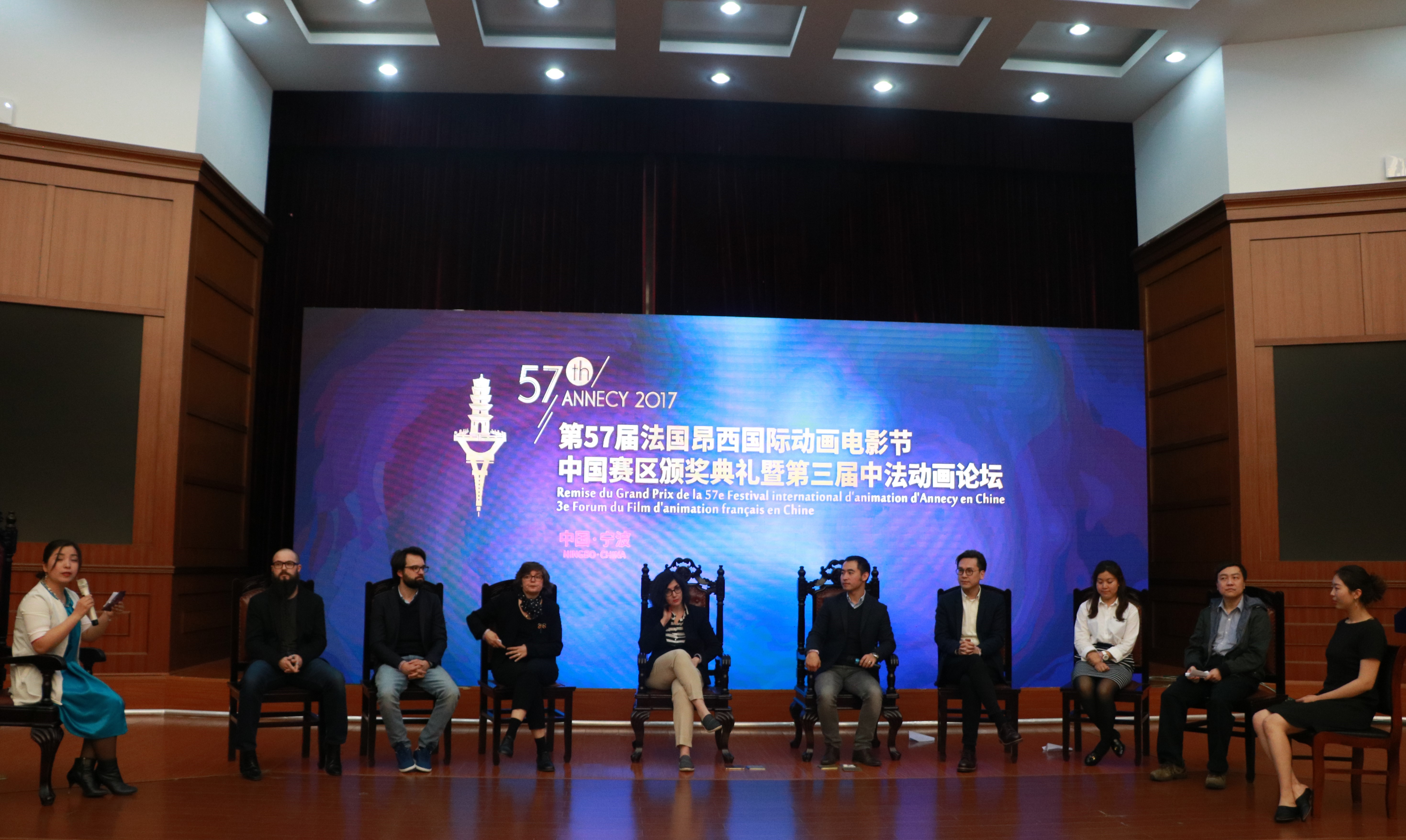 4月13日,第57届法国昂西国际动画电影节中国赛区颁奖典礼暨第三届中法动画论坛在我校隆重举行。浙江大学宁波理工学院党委书记费英勤、宁波南部商务区管委会主任金伟莉等出席颁奖典礼并致辞。中国动漫集团发展研究部主任宋磊在论坛上就《中国动漫产业发展情况》进行了演讲。