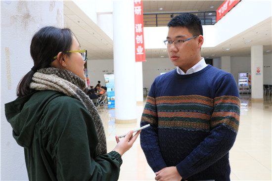 招聘会现场,应聘者和招聘者激烈地沟通交谈着。数不尽的公司摊位令应聘者应接不暇,一个大三应聘者称赞道:“今天的排场真大,我为此准备了整整一年觉得很值得。”