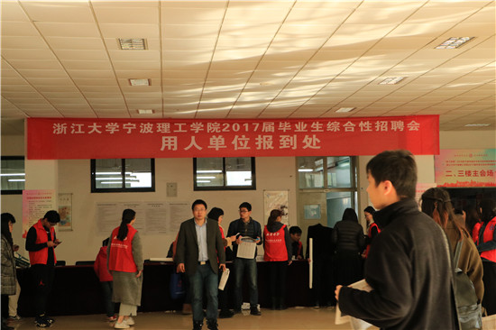 12月3日,“放飞梦想”2017届毕业生综合性招聘会在我校NC大厅举行。此次招聘会由宁波市人力资源和社会保障局主办,我校与宁波市就业管理服务局、宁波市人才服务中心共同承办。宁波市人才服务中心、市人社局相关领导,学校党委副书记黄光杰莅临招聘会现场,为此次招聘单位和应聘学生送去关怀和问候。