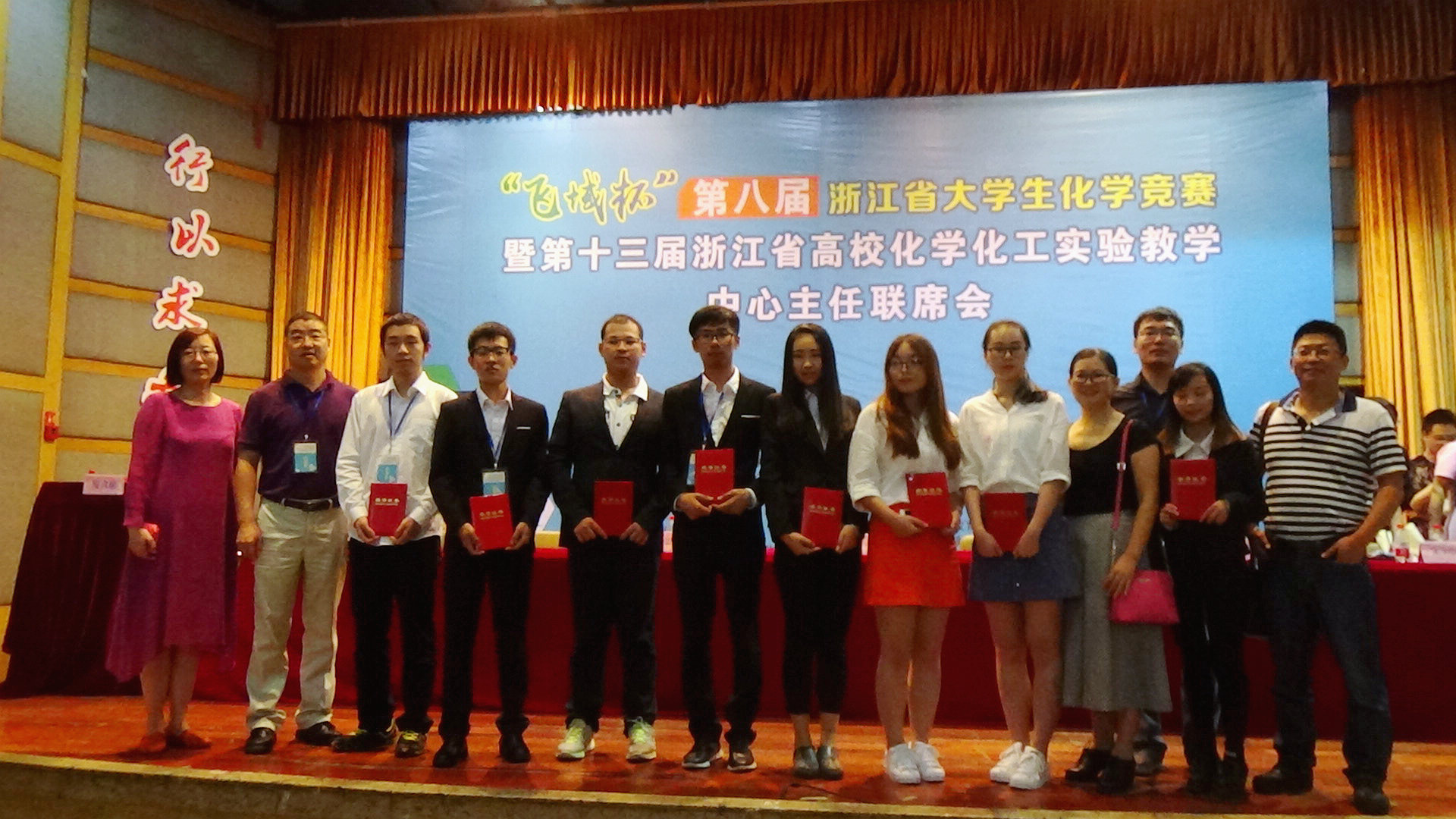2016年9月28日—30日,第八届“飞域杯”浙江省大学生化学竞赛在浙江师范大学举行了决赛。由我校教师周先波、毛红雷指导,杨军、孙菊丽、郑雯静、许皓燊同学组成的“谱写化意”队喜获一等奖。由教师王永红、魏旻晖指导,李静、夏晨曦、钟雨阳、林巧同学组成的“B.U.G”队,喜获二等奖。这也是我校在此项竞赛中首次荣获一等奖。