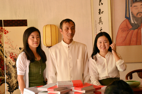 随后,传承人代表陈祥源、教师代表李飒、学生代表舒华三方揭幕、合影,并举行了新书赠书仪式。仪式后,余姚莲花文书传承人卢后和老师带来的《刘玉英借花银》赢得了满堂喝彩,到场的两位外教也赞不绝口。