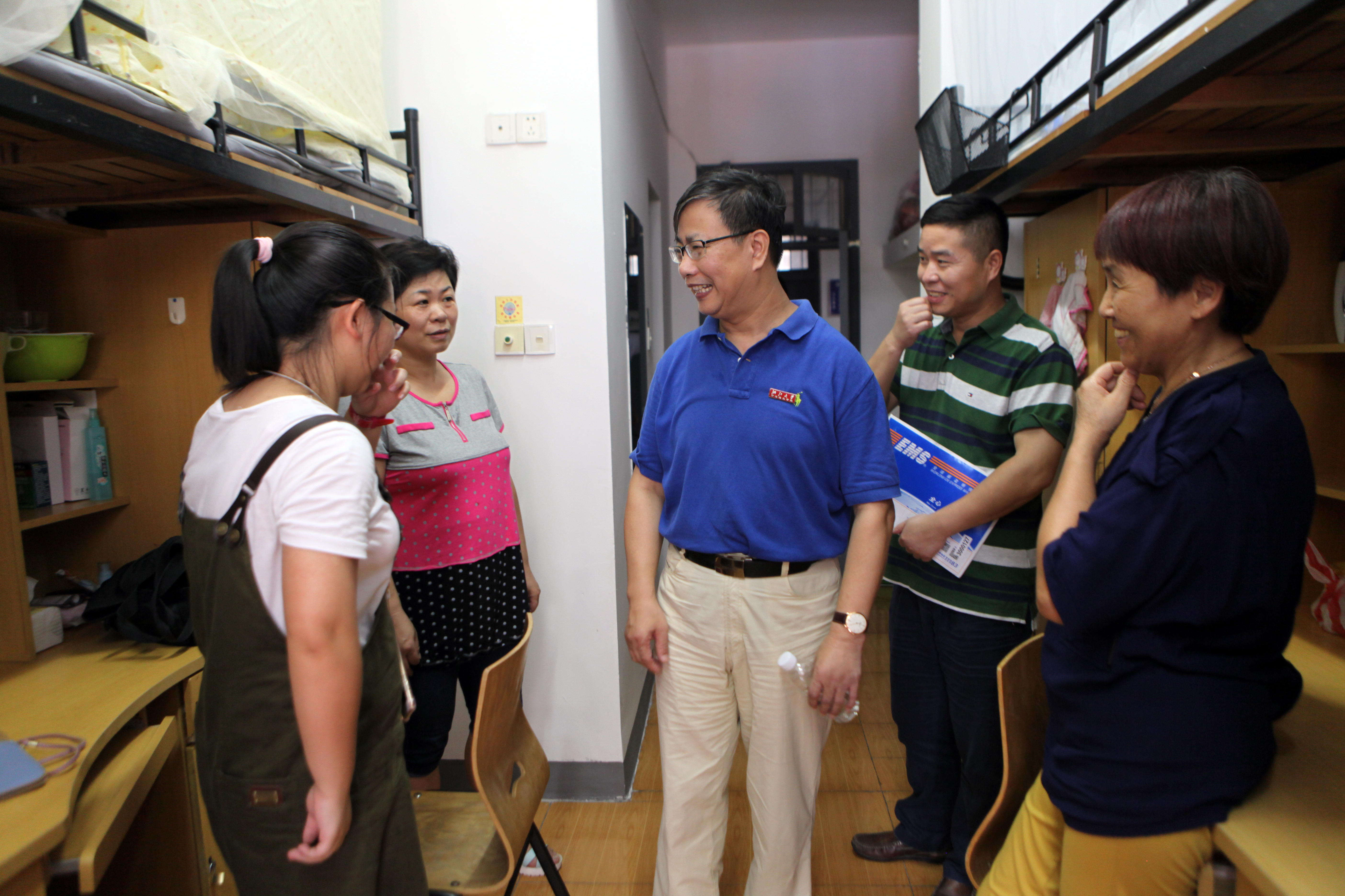 校领导走访了学校总报到处和各个分院的报到处,亲切慰问班导师和班助,仔细询问各分院已注册人数、办理报到手续的具体流程和新生报到时可获取的信息资料等事项。随后,校领导又来到新生宿舍楼内,与新生和家长进一步交流,向他们表示欢迎和感谢,并耐心介绍学校的各方面特色,询问了家长们对学校的满意度和意见,耐心地为同学们答疑解惑,并表示如果遇到问题可向所在学院或学校寻求帮助。校领导勉励新同学要努力学习,珍惜时间,与宿舍、班级同学团结友爱,将来成为学校的杰出代表,报效祖国。