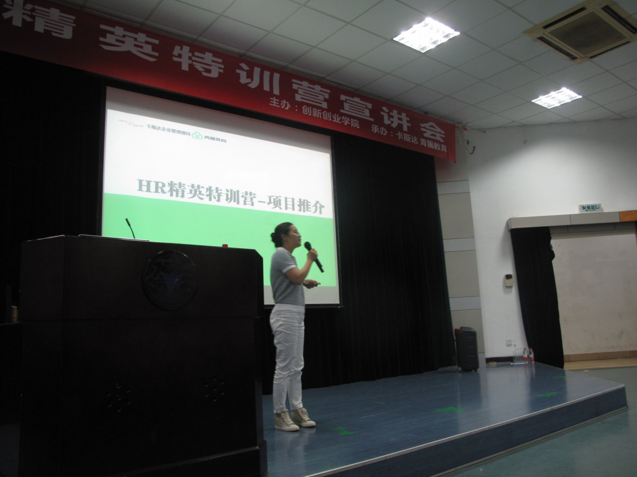 6月2日晚,由学校创新创业学院、宁波卡斯达企业管理顾问有限公司、青圃教育联合打造的“HR精英特训营”宣讲会在NF103举行。此项目是学校、企业探索人才培养的新模式,通过职前训练营的形式,搭建起社会、高校人才输送的高速通道,以企业反馈高校的公益模式,培养一批具有创业精神、具备专业素养、有志于在HR领域开拓事业的精英。