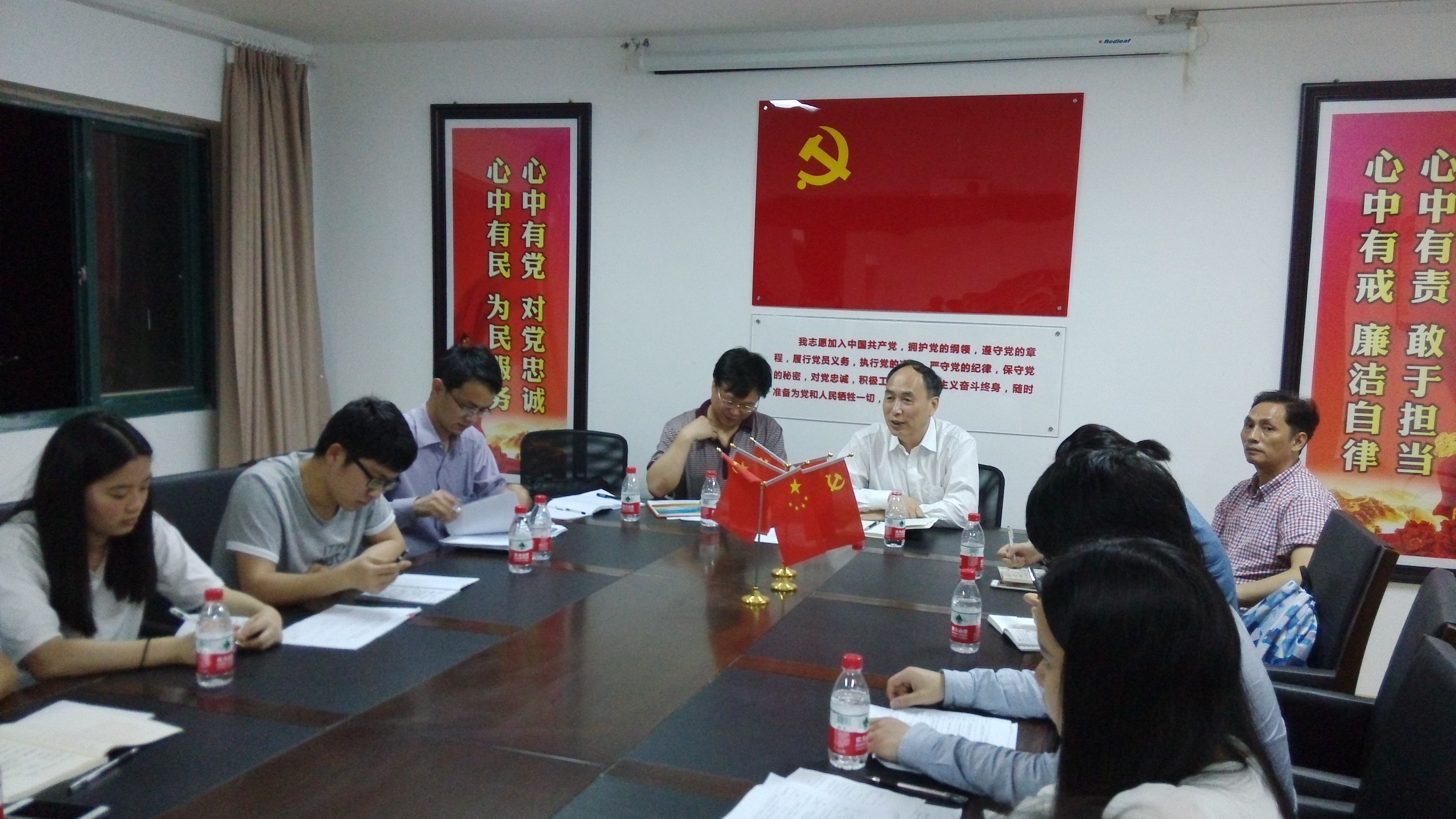 费英勤书记在听取大家的汇报与交流后,肯定了各学生支部在“两学一做”学习教育中取得的阶段性成效。他强调,开展“两学一做”学习教育,是加强党的自身建设,推动全面从严治党向基层延伸的有力抓手,目的是要进一步解决党员在思想、组织、作风、纪律等方面存在的问题,时刻保持党的先进性和纯洁性。他讲到,“两学”就是要紧紧围绕一个中国梦、两个百年目标、三个自信、四个全面、五大发展理念来学,通过学习党章党规和系列讲话,进一步坚定理想信念,纯化入党动机。他指出,“两学一做”学习教育的落脚点在“做”,而且是要在学习基础上做,要边学边做,让理论指导实践,把党员的先进性通过具体行动充分展示出来。他希望,学生党员要在学风建设、文明修身、文明寝室建设等方面切切实实地承担任务,发挥作用;学校相关职能部门要根据“两学一做”具体部署做好组织保障工作;各学生党支部的“两学一做”学习教育要做实做细,要与具体实践相结合,创新性地开展学习教育活动。