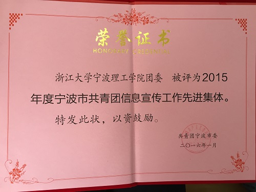 年,校团委继续深入学习贯彻落实党的十八大及习近平总书记系列重要讲话精神,以社会主义核心价值观教育贯穿团工作全过程、全方位,落实学校“教育为学生提升价值”办学理念,不断夯实工作基础,激发组织活力,突出工作特色,提高工作质量,在加强青年学生思想引领、推进大学生创新创业、提升大学校园文化品位、促进大学生综合素质提升等方面开展了系列工作。在工作中,围绕中国特色社会主义理论体系及十八届四中、五中全会、社会主义核心价值观等内容,组织学生开展各类学习与实践活动,不断加强青年学生思想引领;以“活力团支部”建设为重点,着力加强基层团组织建设;以“社团发展五年规划”为指导,大力加强学生社团建设;以“挑战杯”为龙头,积极带动大学生创新创业教育,并获浙江省“挑战杯”竞赛“最佳进步”奖;编印团刊《随园青年》4期,规范学校团属学生组织微信公众号管理,不断加强网络思想引领,团委微信2次入围全国高校团委榜前十、浙江省和宁波市高校团委榜榜首的好成绩;印发《浙江大学宁波理工学院大学生“公益学堂”实施方案》,开展大学生公益学堂logo设计大赛,聘请16名公益事业领域的知名学者、公益组织负责人、政府民政部门负责人作为“公益导师”,确定经贸学院“爱在路上”公益行动等43支项目为“公益学堂”第一期注册项目,组织开展“思享会”、公益沙龙、优秀项目推广等活动,深入推进大学生“公益学堂”持续开展;以“一院一品”为重点,不断提升社会实践工作成效,2015年,共组织团队268支,参与团队实践人数近3300人,指导教师144名,累计开展精品服务活动300余项,足迹遍布省内外近30个地区,受到各级各类新闻媒体报道588篇,并获得宁波市大学生暑期社会实践活动优秀组织奖。