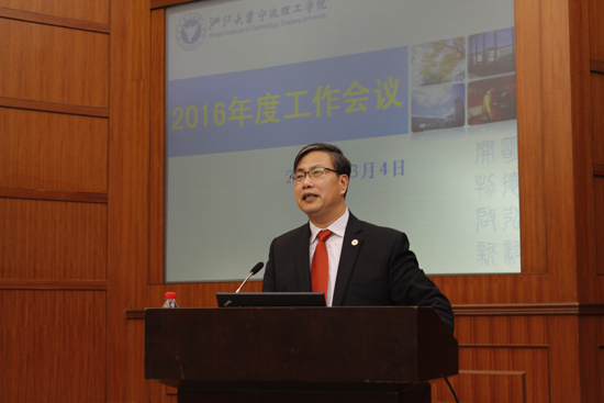 党委书记费英勤在会上部署了2016年党委工作重点,通报了学校领导班子民主生活会和浙大内巡情况,对今后的工作提出了要求。他指出,今年党的重点工作一是在开展党的群众路线“三严三实” 专题教育后,将面向全体党员开展“两学一做”活动;二是认真抓好整改落实,持续推进作风建设;三是建立两项重要制度:党总支书记抓党建工作制度和强化意识形态责任制度;四是筹备召开第二次党代会。