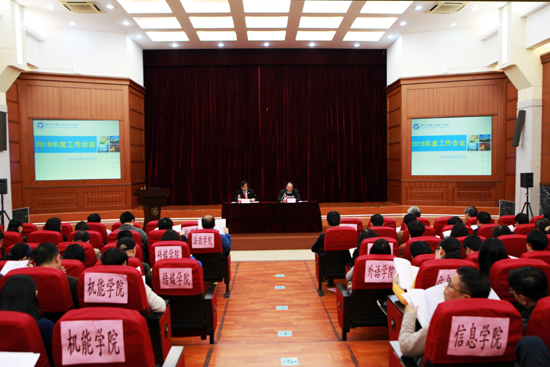 3月4日下午,学校召开2016年度工作会议,总结、部署学校年度工作。学校领导出席会议,党委书记费英勤主持会议。全体中层干部,全体教授,各研究所所长、副所长,各级人大代表、政协委员,各民主党派负责人,各党支部书记,各分工会主席、学院团委书记,全体主管、副主管参加了会议。