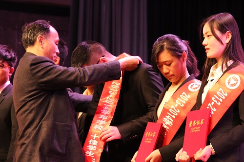 据悉,2013—2014学年学校共有15人荣获国家奖学金,10人获得学校“十佳学生”称号,348人获得国家励志奖学金。此外,共计2884人次获得学校各类奖学金,589人获“三好学生”荣誉称号,390人获“优秀学生干部”荣誉称号,共评选先进班级38个、文明寝室133个、学风建设先进单位2个、优良学风示范班5个、优良学风班34个、文明示范课堂9个、学习纪律优胜班9个。