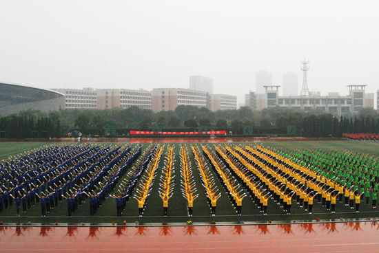 身着军装的仪仗队领队精神抖擞地率领鲜花队踏入会场,紧随其后的各学院方队以别致的表演博得全场的喝彩和掌声,拉开了运动会的序幕。