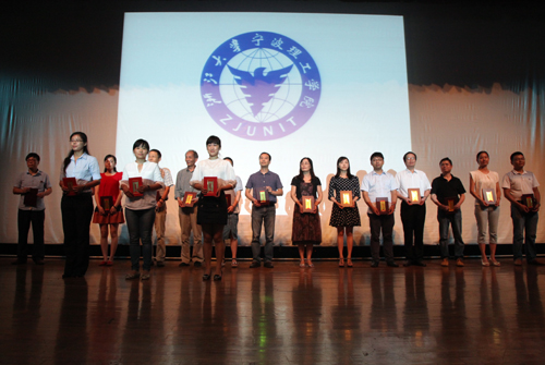今年是第30个教师节,费书记代表学校向各位老师表达祝福、向新报到的教职工表示欢迎后,宣读了省级荣誉获奖者和2013年度校级先进工作者名单,金伟良院长为其颁奖。在过去的一年里,我校还有很多集体和个人受到了省市各级组织的专门表彰,与会者也以热烈的掌声对这些获奖的集体和个人表示了祝贺。
