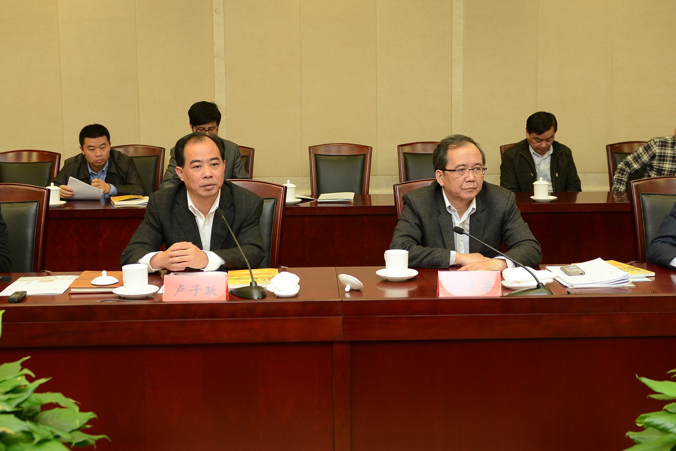 林建华对浙大宁波理工学院办学十三年取得的成绩表示了充分的肯定,他说,近年来浙江大学办学有两大重任,一是如何尽快办成世界一流大学,二是如何更好地服务地方发展。浙大宁波理工学院转型建设成为有区域特色的高水平科技创新型大学需要市校双方进一步深化战略合作。他强调,学院在转型发展过程中需要在管理体制机制、学科资源配置、师资水平提升等方面做明确定位,需要重点抓“两个人”:一是提高教师队伍水准,优化师资结构,二是扩大研究生规模,提升办学层次。卢子跃表示,宁波市人民政府会全力支持宁波理工学院的转型建设,尽快将浙大宁波理工学院建设成一所与浙江大学相对错位、优势互补、机制创新、协同发展,以科技创新为特色的高水平大学,更好地服务宁波转型升级,实现市校协同创新、共赢发展。