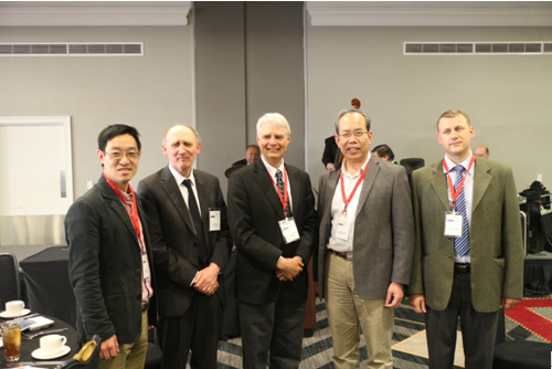 左起:我校老师:郑皎;著名学者:Felix Ziegler;大会主席:ReinhardRadermacher;我校老师:陈光明;我校博士后研究员:康斯坦丁.薛斯塔帕洛夫
