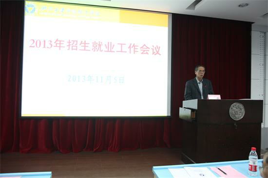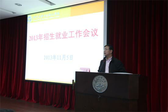 11月5日下午3:30在NC202举行了2013年招生就业工作会议。与会的领导有学校院长金伟良,学校副院长杨建刚,学校教务部部长、招生办主任杨祥龙和学校学生工作部部长、就业指导与服务中心主任周树红,会议由党委副书记黄光杰主持。此外,学校和各院系招生、就业工作领导小组成员,各专业负责人,各地区招生组组长、副组长,全体毕业班班导师,全体辅导员、教学主管或副主管也到场参加会议。