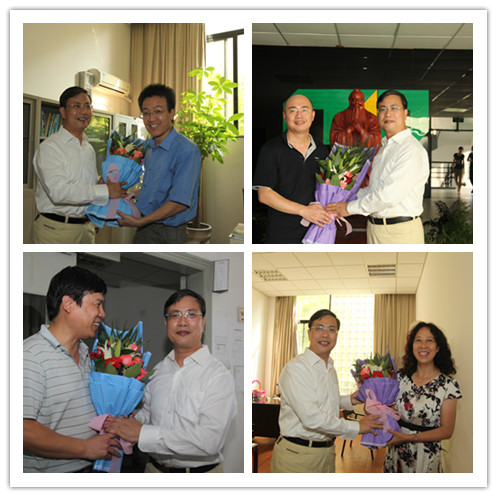 金伟良院长依次来到生化学院教师办公室、计算机基础教学实验中心和传媒学院教师办公室看望方征平教授、高坤教授、蔡明伦副教授和黄少华教授,并向他们送上鲜花和祝福。金院长亲切地与老师们交谈,询问他们近期的工作和生活情况,并对他们在新学年的工作提出了希望。他说,今年是我校实施“开放办学”战略重要的一年,学校和学院的开放办学都要依靠各位教授,教授们要齐心协力带头走在前面。教授们也纷纷向金院长表达了自己对学院发展的一些建议,提出了工作中遇到的问题和困难。