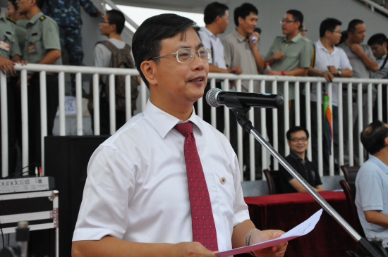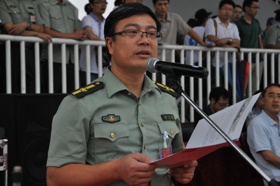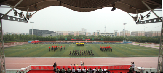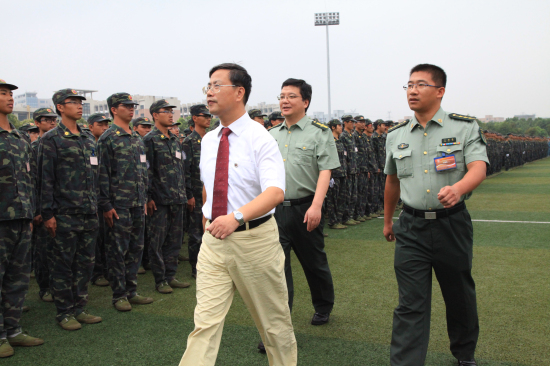 浙江大学宁波理工学院2013年学生军训阅兵暨总结大会于9月7日下午15:30准时举行。学院院长金伟良,学院党委书记费英勤,浙江大学军训师副政委、浙江大学党委学工部部长邬小撑,浙江大学军训师副师长、浙江大学党委人武部副部长林伟连,学院副院长俞春鸣,学院副院长杨建刚,军训团政委、学院党委副书记黄光杰以及以及各二级学院党政负责人、全体辅导员、班导师等参加了此次大会。大会由军训团副团长王坚毅主持。
